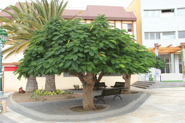 Kennt jemand diesen Baum? Spendet auf den Kanaren auf so mancher Plaza Schatten.