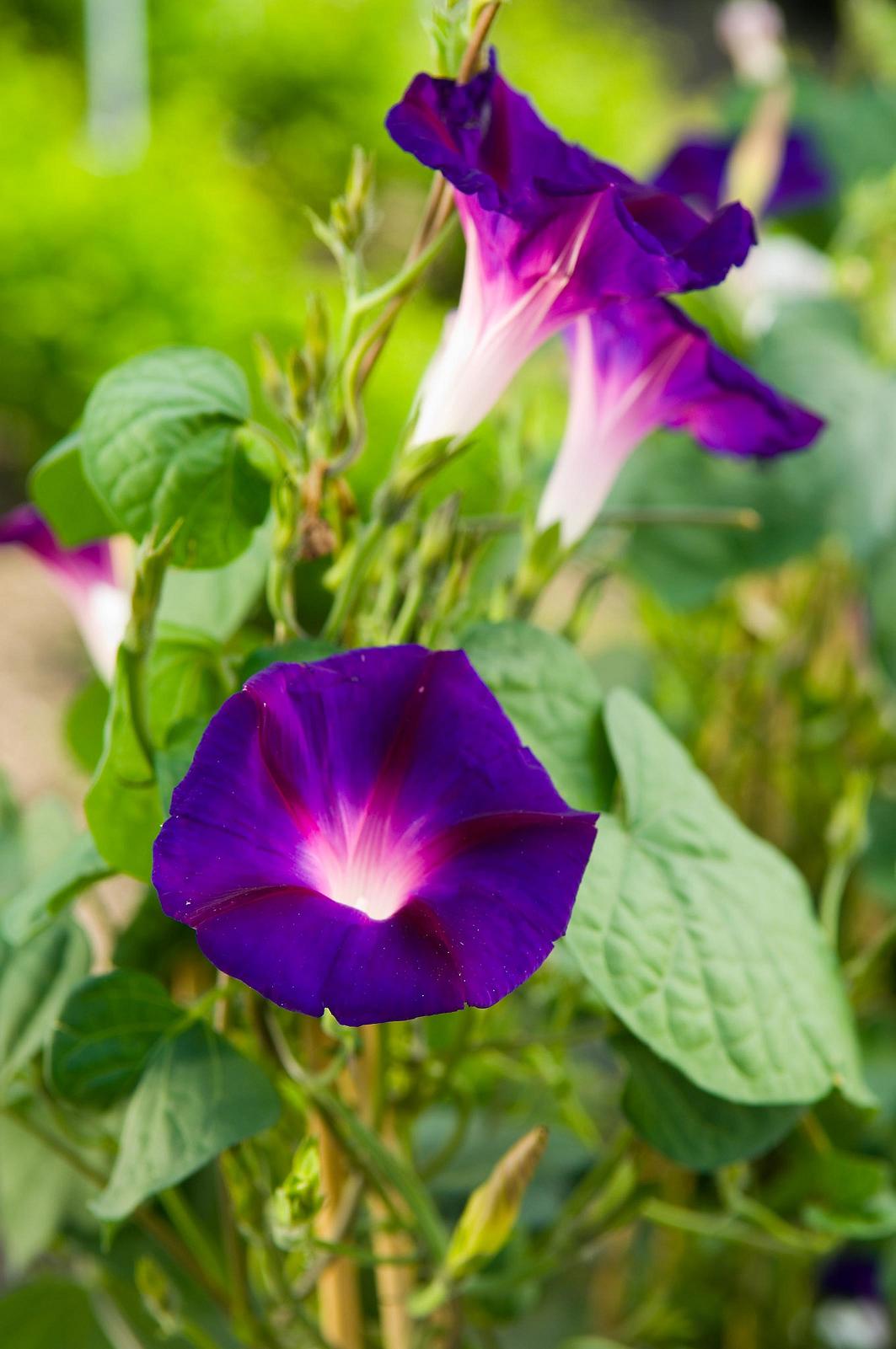 Innerhalb einer Saison entwickeln beispielsweise Schwarzäugige Susanne (Thunbergia), Gloxinienwinde (Asarina) oder Prunkwinde (Ipomoea) eine erstaunliche Wuchsleistung. Sie werden zwei bis drei Meter hoch und blühen bis in den Herbst hinein. Etwas kleiner bleiben Duftwicken, die, wie der Name verspricht, je nach Sorte zart bis intensiv duften. Sie ranken gerne an Drahtzäunen und Seilen empor und werden ca. 1,5 Meter hoch. Wer sich gerne mit Exoten umgibt, der kann sich für den Sommer auch fremdländische Kletterpflanzen wie Bougainville (Bougainvillea), Sternjasmin (Trachelospermum) oder Bleiwurz (Plumbago) auf Balkon oder Terrasse einladen. Sie stehen am besten im Topf. Die Kletterhilfe sollte dabei fest mit dem Pflanzgefäß verbunden sein. So sind sie mobil und können vor den ersten Frösten einfach ins Winterquartier geräumt werden.