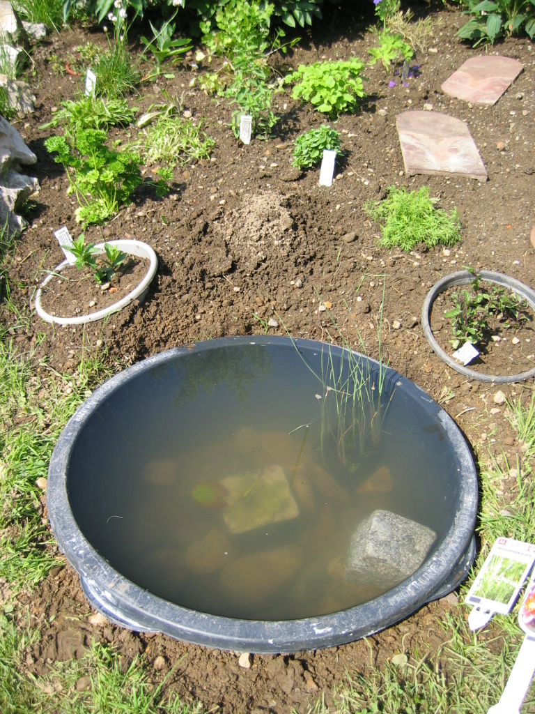 Am besten nimmst du zum Füllen Regenwasser aus einer alten Regentonne, wenn du welches besitzt. Da ist dann schon einiges an Leben drin...
