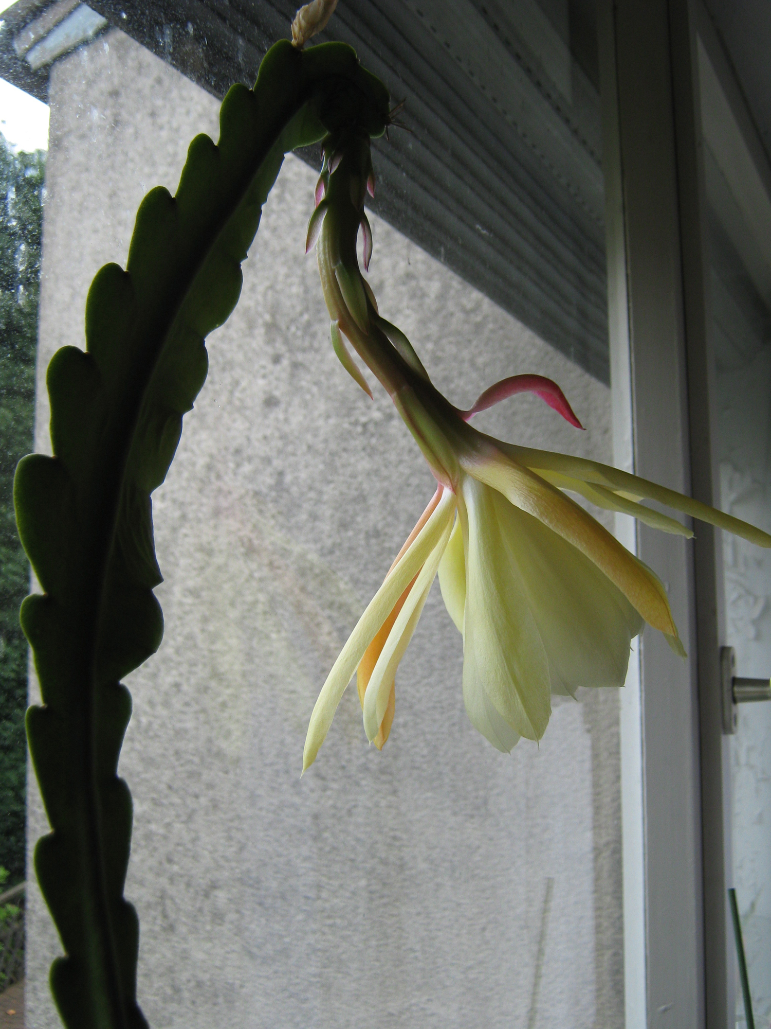 Nun hat si das erste Mal geblüht, aber nicht in der Nacht sondern heute morgen um 11 Uhr.Jetzt habe ich leise Zweifel und würde mich über euer Urteil freuen.