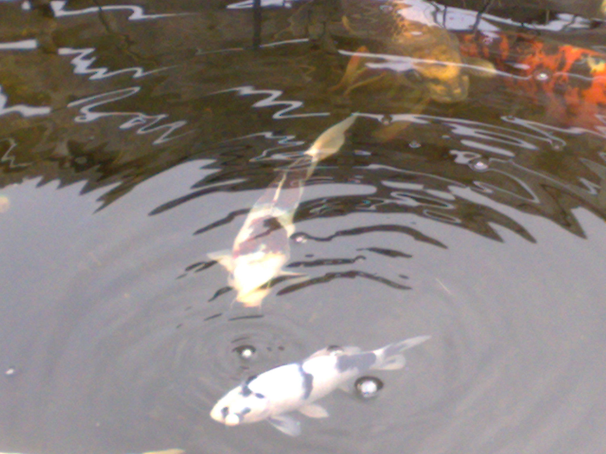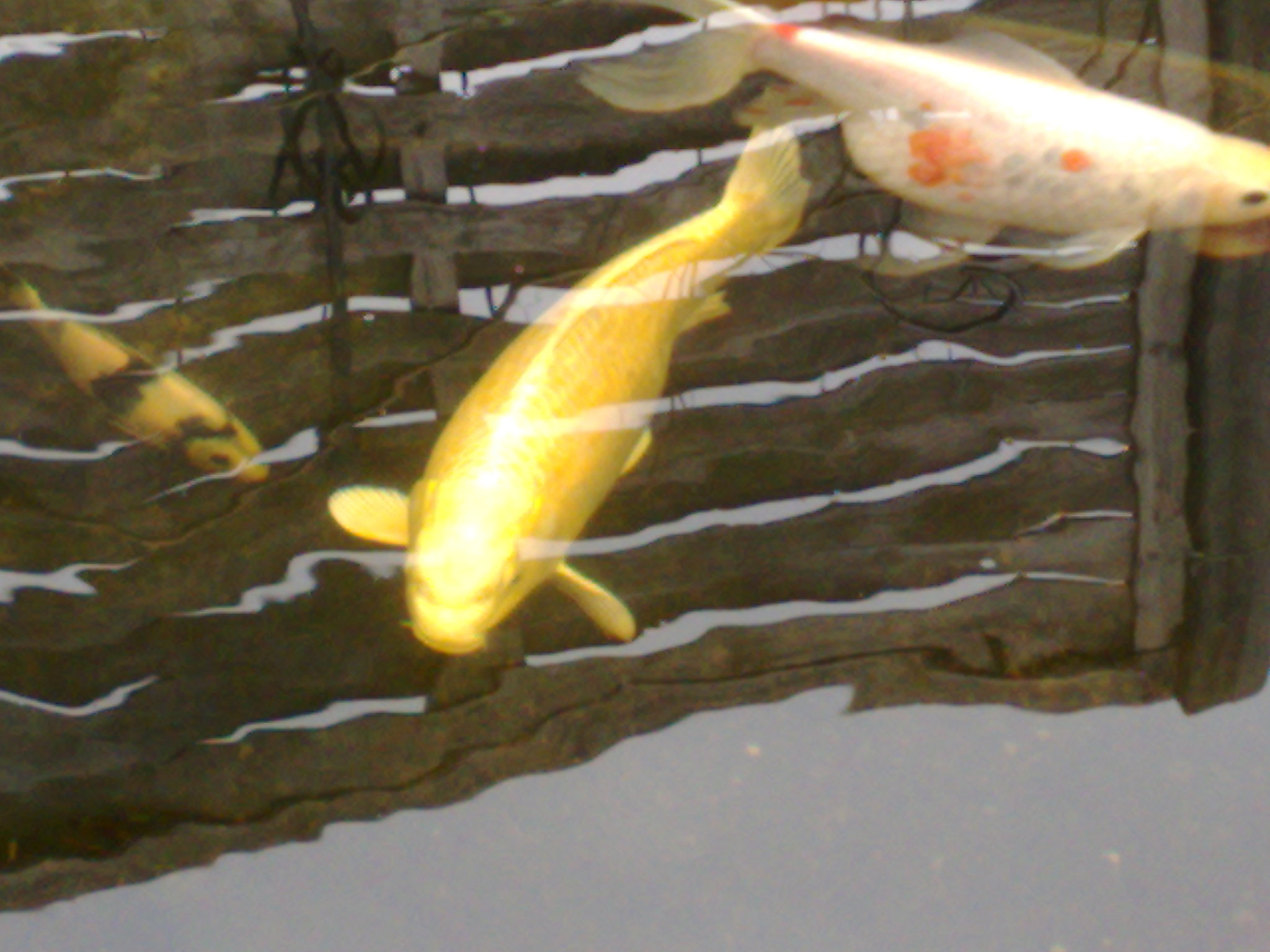 Die Goldfische in dem Teich auf unserer Kleintierzuchtanlage ( nein die züchten wir eigentlich nicht, aber die vermehren sich auch fleißig *gg* ) sind schon ne Weile wieder zu sehen. Hab ihnen neulich mal was zum Futtern angeboten, aber die wollten davon nix fressen