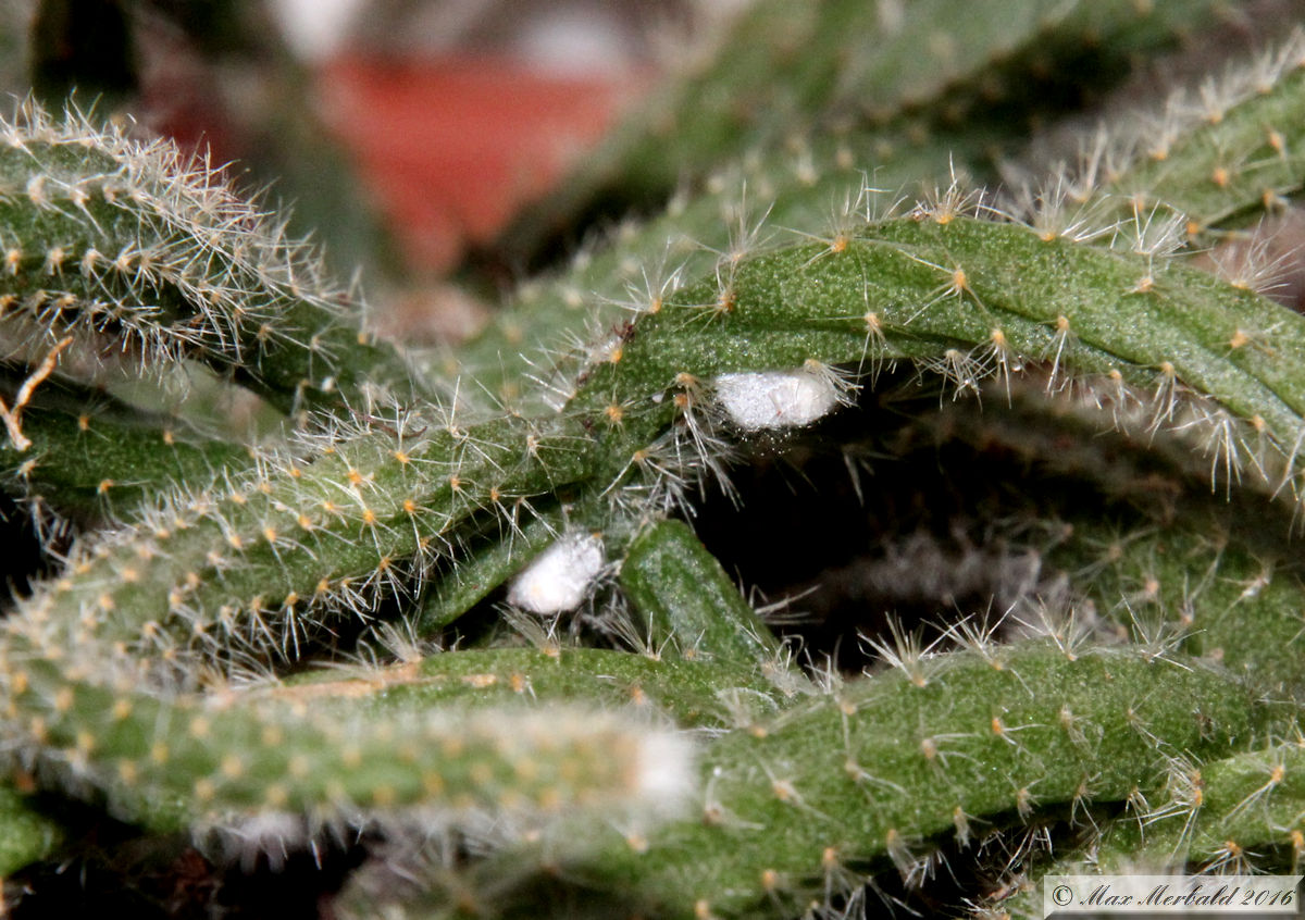 auf meiner Rhipsalis hab ich so eine Art Konkons gefunden. Es sind nicht viele, und in den 2-3 Wochen, seit ich die gesehen habe, sind's auch nicht mehr geworden, und es scheint sich auch nicht zu bewegen, also wohl eher keine Wollläuse. Aber weiß jemand, was das ist?