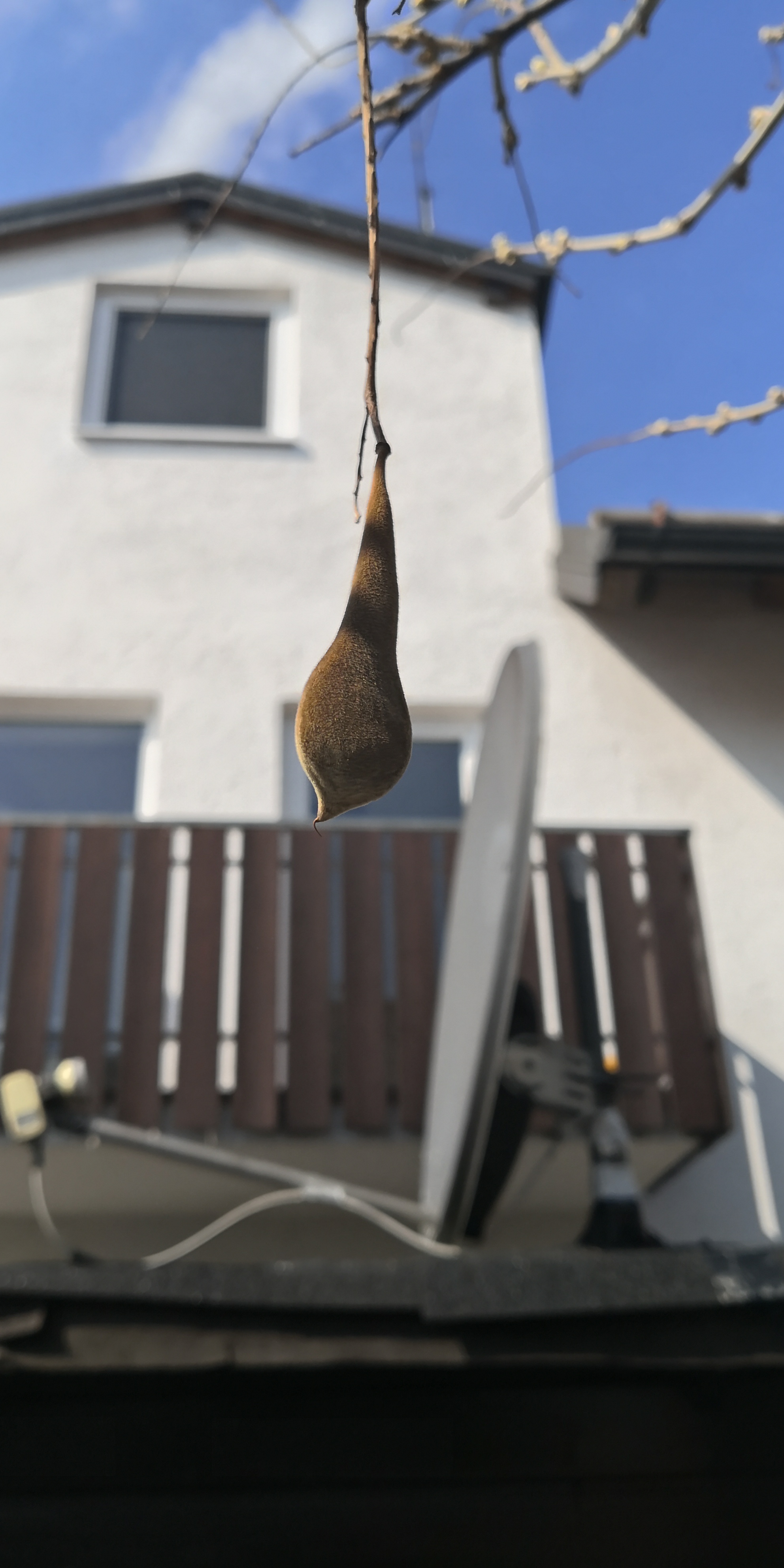 Hallo, ich bin neu hier und habe eine Frage zu einem Kokon, sofern es einer ist. Wir haben einen Blauregen in unserem Garten und daran hängt etwas, was ich so noch nie gesehen hatte. Es ist länglich braun ca. 7 cm lang und sieht samtig aus. Kennt das jemand? Könnte das ein Kokon sein?