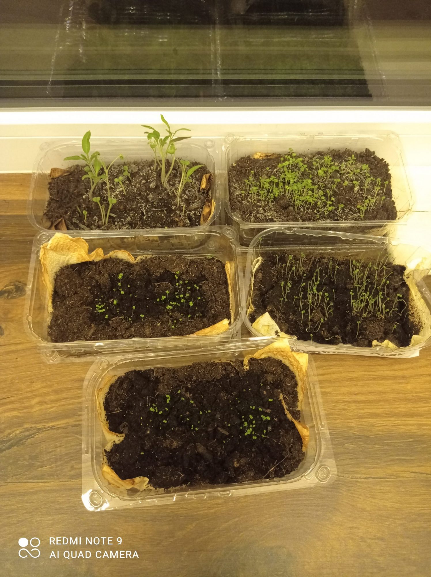 Neben dem Beet spriessen die beiden eingangs erwähnten Minzen fleissig, Huacatay hat sich wie immer selbst ausgesät und bekommt auch schon die ersten richtigen Blättchen, und der vor etwa einer Woche gesäte Weizen für Kätzchen guckt auch schon aus der Erde. Im weiteren Katzenkräutergarten treibt die Katzenminze wieder schön aus, und dass sich der vor ein paar Jahren praktisch komplett eingegangene Baldrian seit letztem Jahr doch wieder erholt und gedeiht, freut mich sehr.