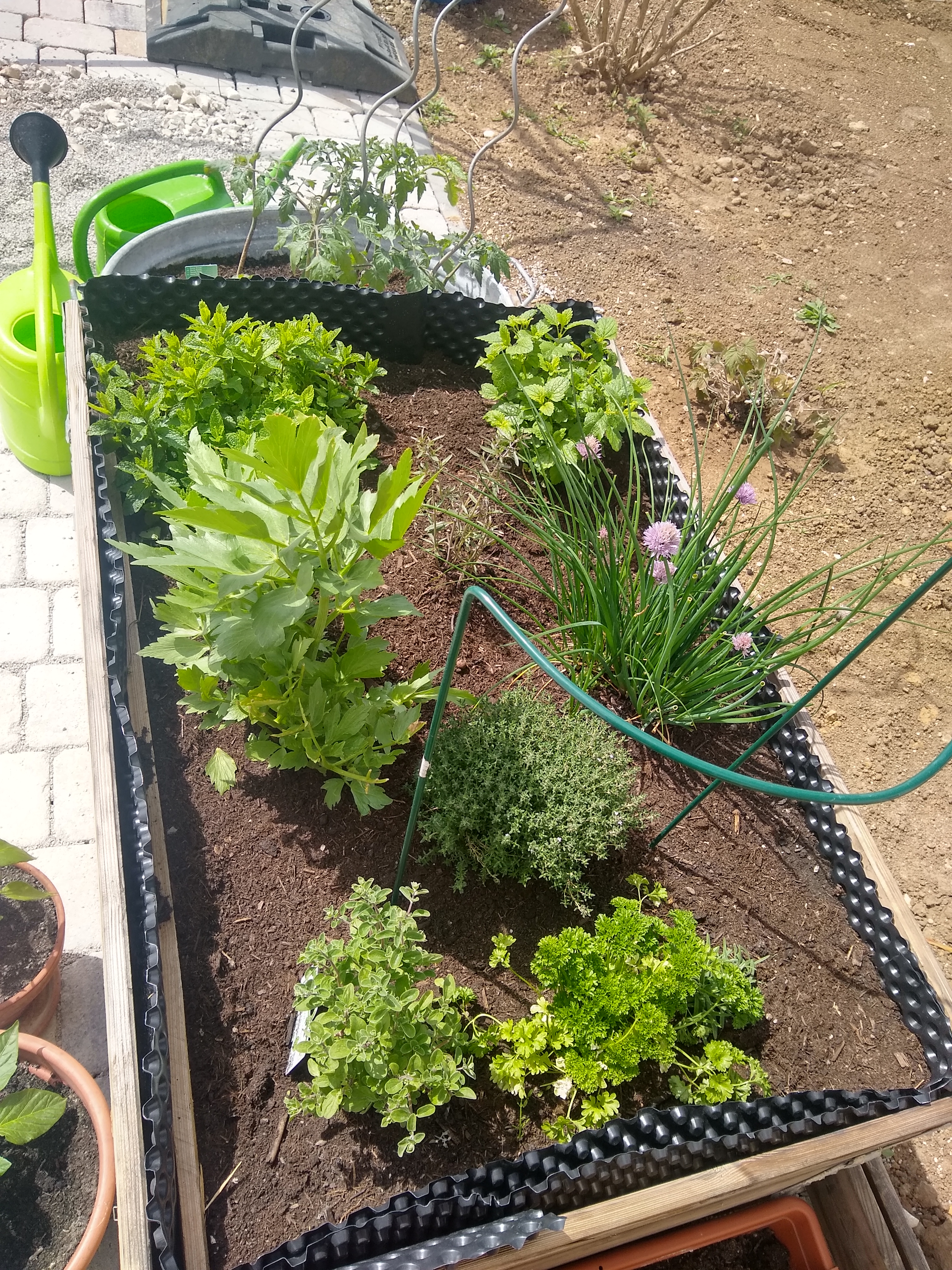 Die eine Hälfte meines Kräuterbeets ist schon seit einiger Zeit rausgeputzt. Der Colastrauch ist zurückgeschnitten und treibt nun langsam frisches Grün, die Zitronenmelisse hält sich noch etwas zurück, der knorrige, alte Currystrauch zeigt langsam auch Wachstum und kann bald mal wieder stark kleiner gesäbelt werden. Schnittlauch und Schnittknoblauch sind ja immer die ersten mit Wachstum und sind schon ordentlich gross. Vom Schnittlauch habe ich sogar schon zwei Mal geerntet.