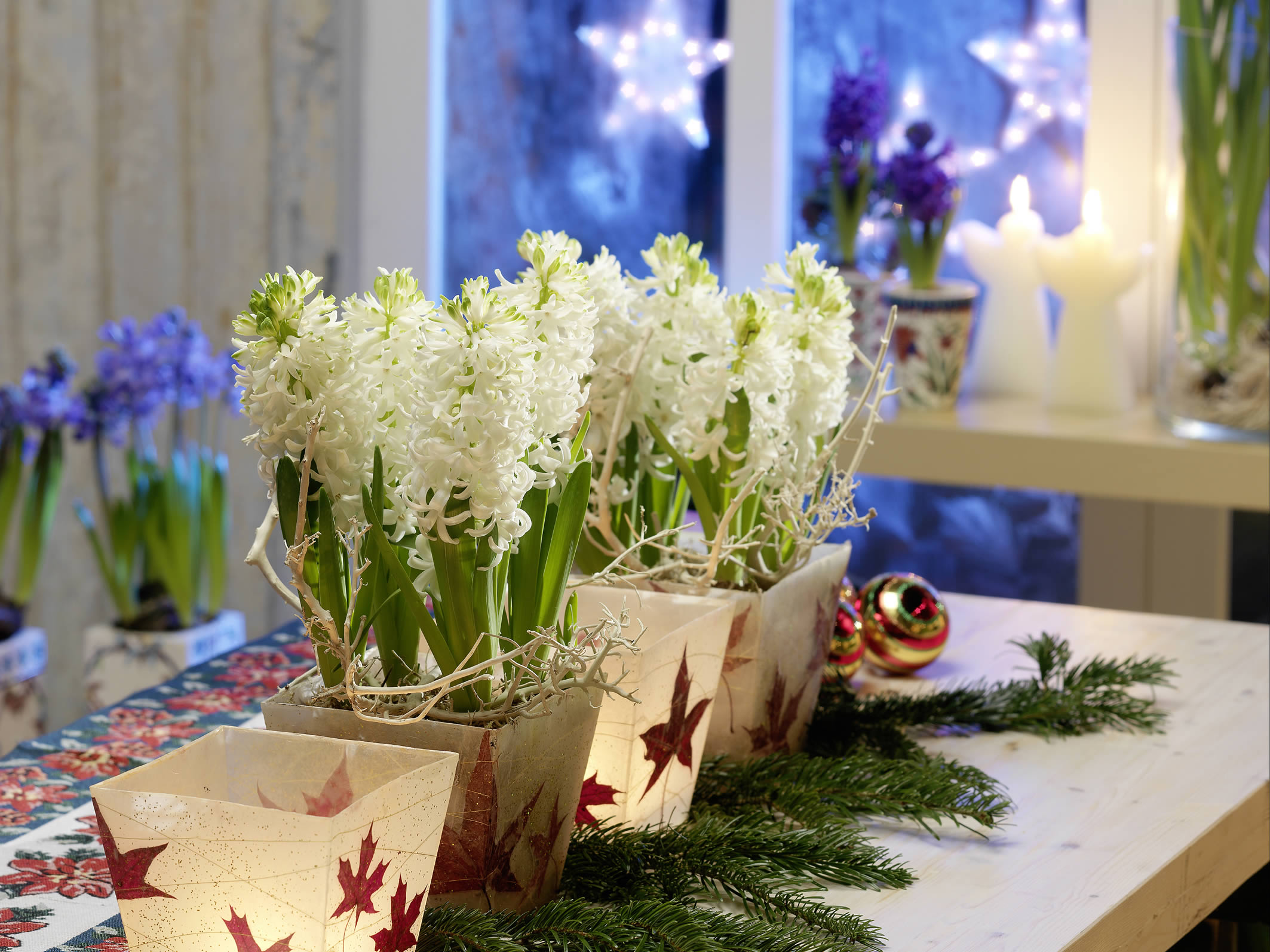 Alle Jahre wieder das gleiche Desaster: Pünktlich am Heiligabend erfüllen sich in der Familie - oder weniger traditionsbewusst im Freundeskreis - vermeintlich lang gehegte Wünsche. Endlich kann man einen erbsensuppengrünen Pullover sein Eigen nennen! Dreimal der neue Buchband von Harry Potter, wie schön! Da wechseln Duftwässerchen als Verlegenheitsgeschenk den Besitzer und auch das ideenlose Pendant dazu: Socken und Krawatten. Mit dem süßen Kätzchen machen sich Großeltern bei ihren Enkeln zwar Freunde, aber die Arbeit bleibt ja doch an den Eltern hängen: Vielen Dank ... Kein Wunder, dass laut Deutschem Tierschutzbund viele Tausende unüberlegt verschenkte Tiere nach den Festtagen im Tierheim landen. Wenn schon lebendes Geschenk, dann wohlüberlegt, pflegeleicht und unkompliziert! Am cleversten ist eine wahre Schönheit: Die Hyazinthe im Topf ist so eine. Lebendig und in kräftiger Farbe, nicht zu teuer - und herrlich duften, das kann sie auch! Schon eine oder zwei Hyazinthen reichen aus, um einen Raum mit angenehmem Parfum zu füllen. Außerdem werden die Weihnachtstage erst mit der richtigen Blütendekoration so richtig festlich und behaglich.