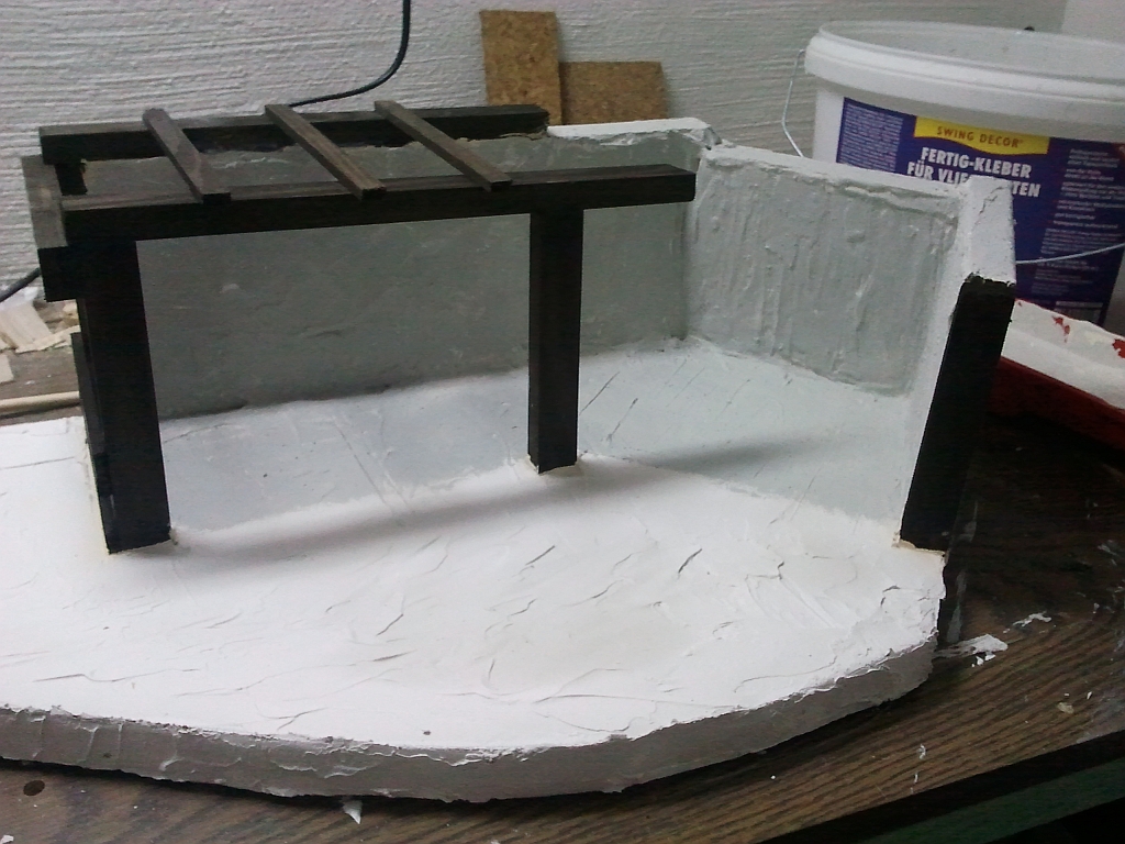 Also erstmal einen Platz aussuchen, Größe der Grundplatte ausmessen, im Kopf eine erste Krippenvision projezieren und es kann los gehen! Zum Maßstab muss man sich natürlich auch gedanken machen. Ich habe 9cm Figuren und habe die Gebäude höhe dann einfach so berechnet: Figurenhöhe * 1,5