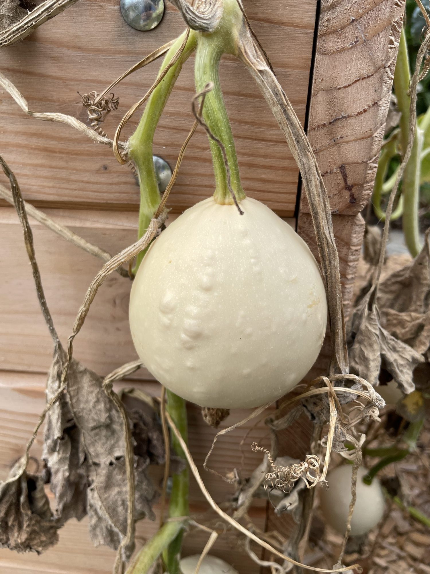 hochbeet zwei Kürbisse entdeckt, die ich nicht einordnen kann. Evtl. Hat hier jemand eine Ahnung was das für eine Sorte ist.