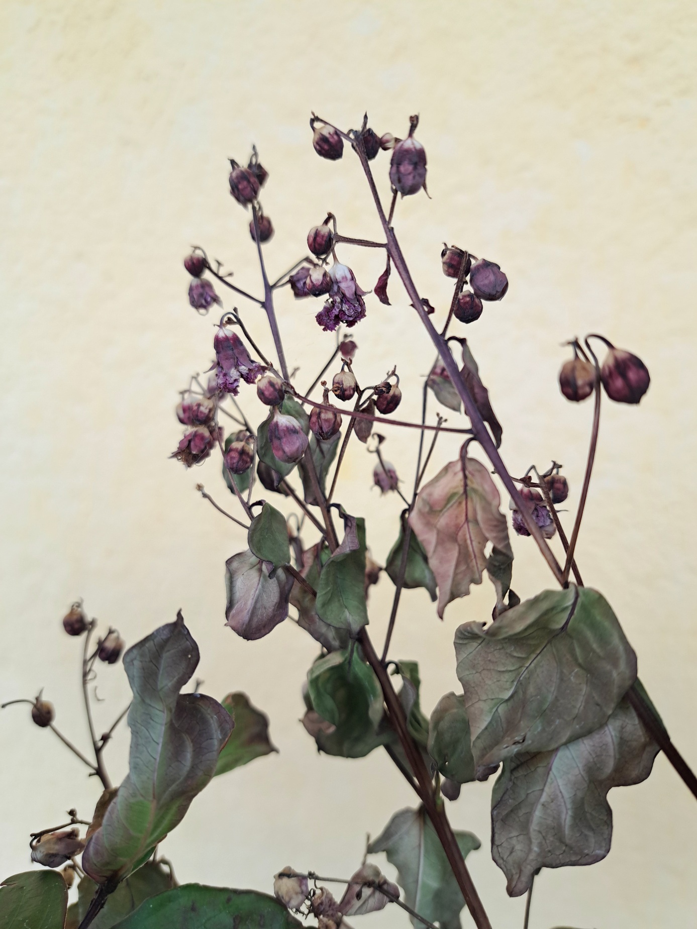 Dieses Jahr kaum neue Blüte. Fokus: Wurzelregeneration & Holzreife. Grüne Augen können noch zögerlich treiben oder bis Frühjahr ruhen – beides normal. Nächste Saison bei gutem Rückschnitt und richtiger Kultur wieder sehr gute Chancen auf Blüte.