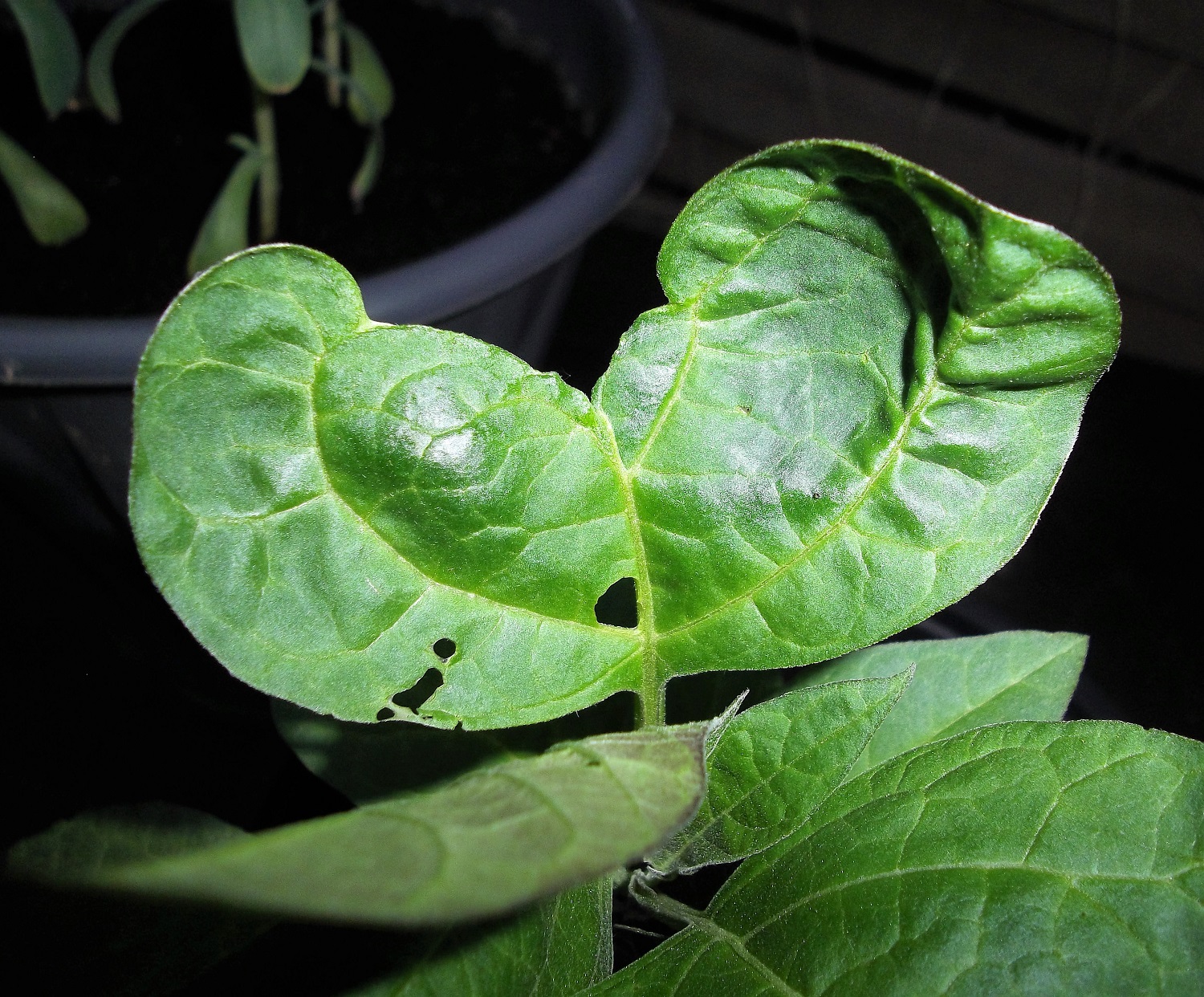 Meine selbst ausgesäte Datura metel macht auch viele sehr merkwürdige Blätter...