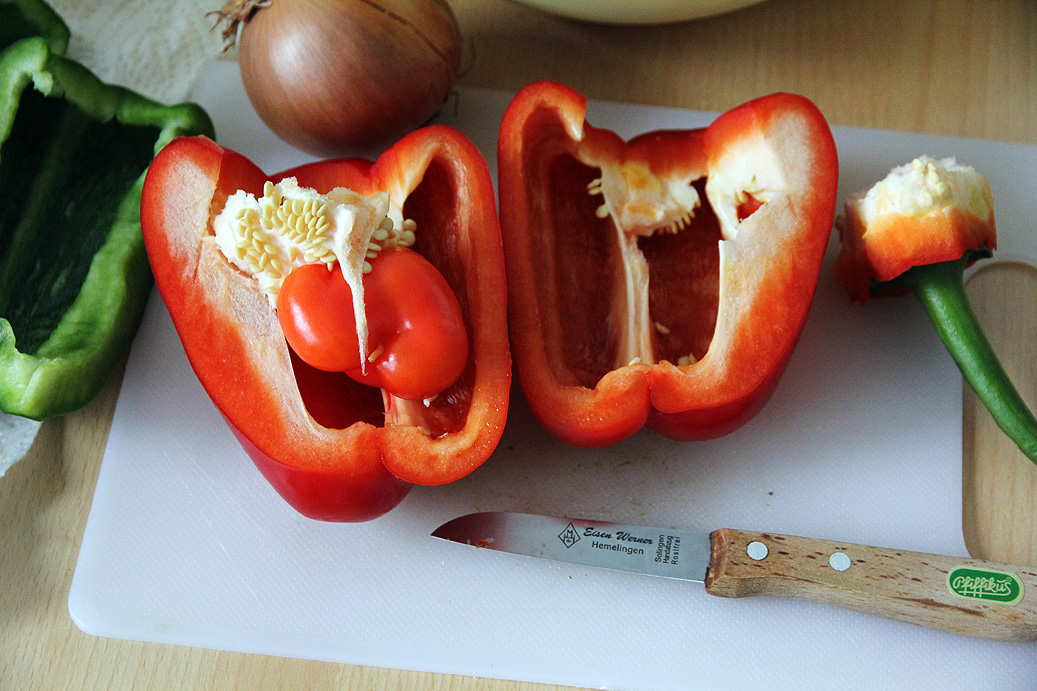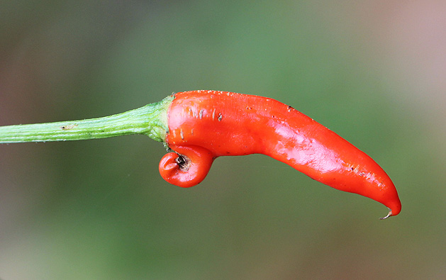 Eine etwas befremdlich aussehende Schote fiel mir bei der diesjährigen Chiliernte auf. Zur Sorte kann ich nichts sagen, die Samen stammen aus einer Schote, die im Supermarkt unter "Rawit" verkauft wurde.