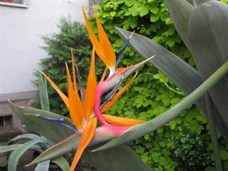 Mein Nachbar hat seine Strelizie nach der Überwinterung am Hausfenster mit in den Hof runter gestellt, die hat 4 schöne Blüten angesetzt.