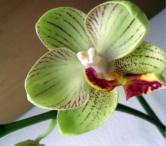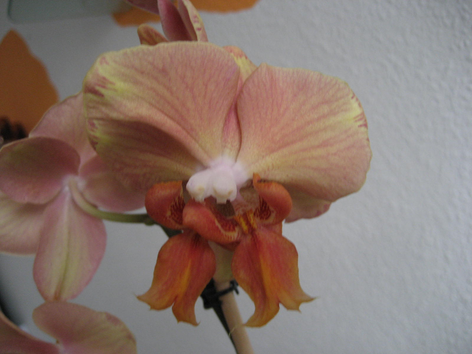 Da hab ich auch ne Phal - irgendwie hat sie nur eine halbe Lippe - die Färbung ist aber komplett vorhanden. Alle anderen Blüten an der Pflanze sind normal - aber schon die Knospe sah merkwürdig aus.