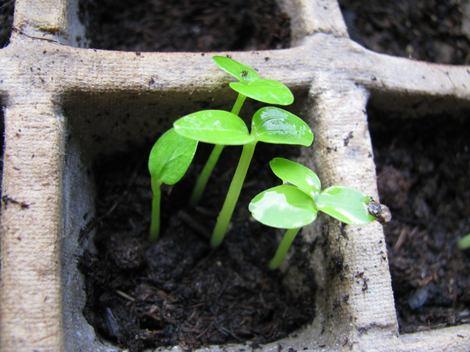 Und bei den Heurigen Keimlingen ist eine Pflanze dabei deren Blätter wie ein V aussehen, also zwei Blätter wachsenzu einem zusammen.