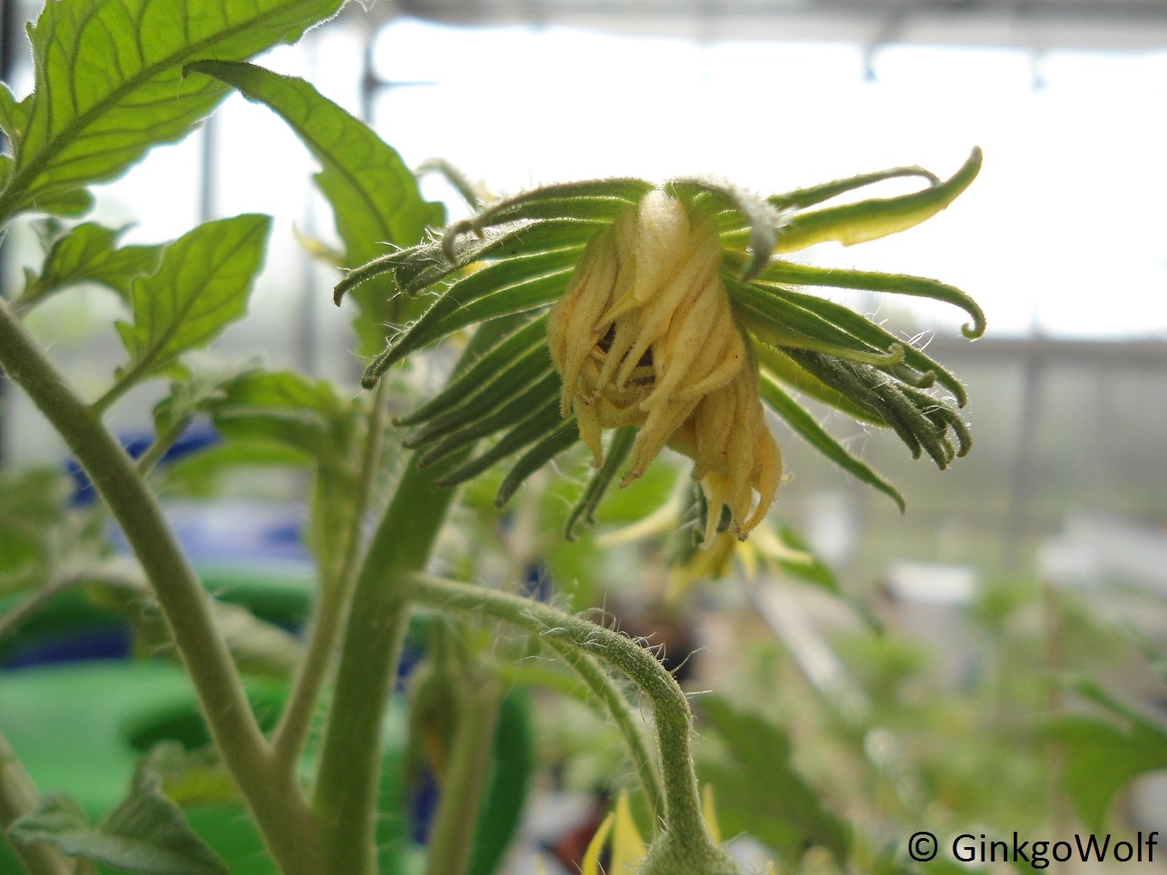 Meine erste Tomatenblüte in diesem Jahr sah genau so aus, ich dachte aber das sei für Fleischtomaten normal... Die restlichen Blüten und Tomaten sind normal gewachsen und deutlich kleiner.