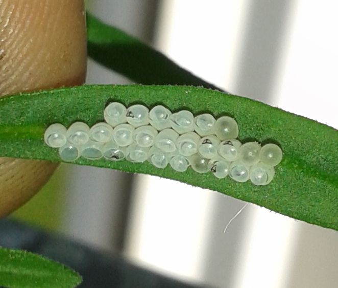 vor einigen Tagen habe ich am Lavendel 2 kleine weißliche Eierketten entdeckt.