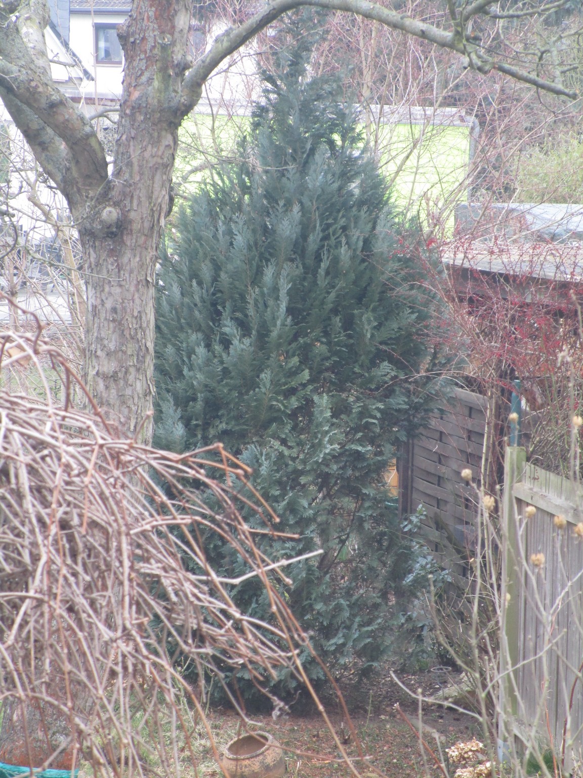 Leider wurde der Thuja nie geschnitten und ist relativ verwachsen.