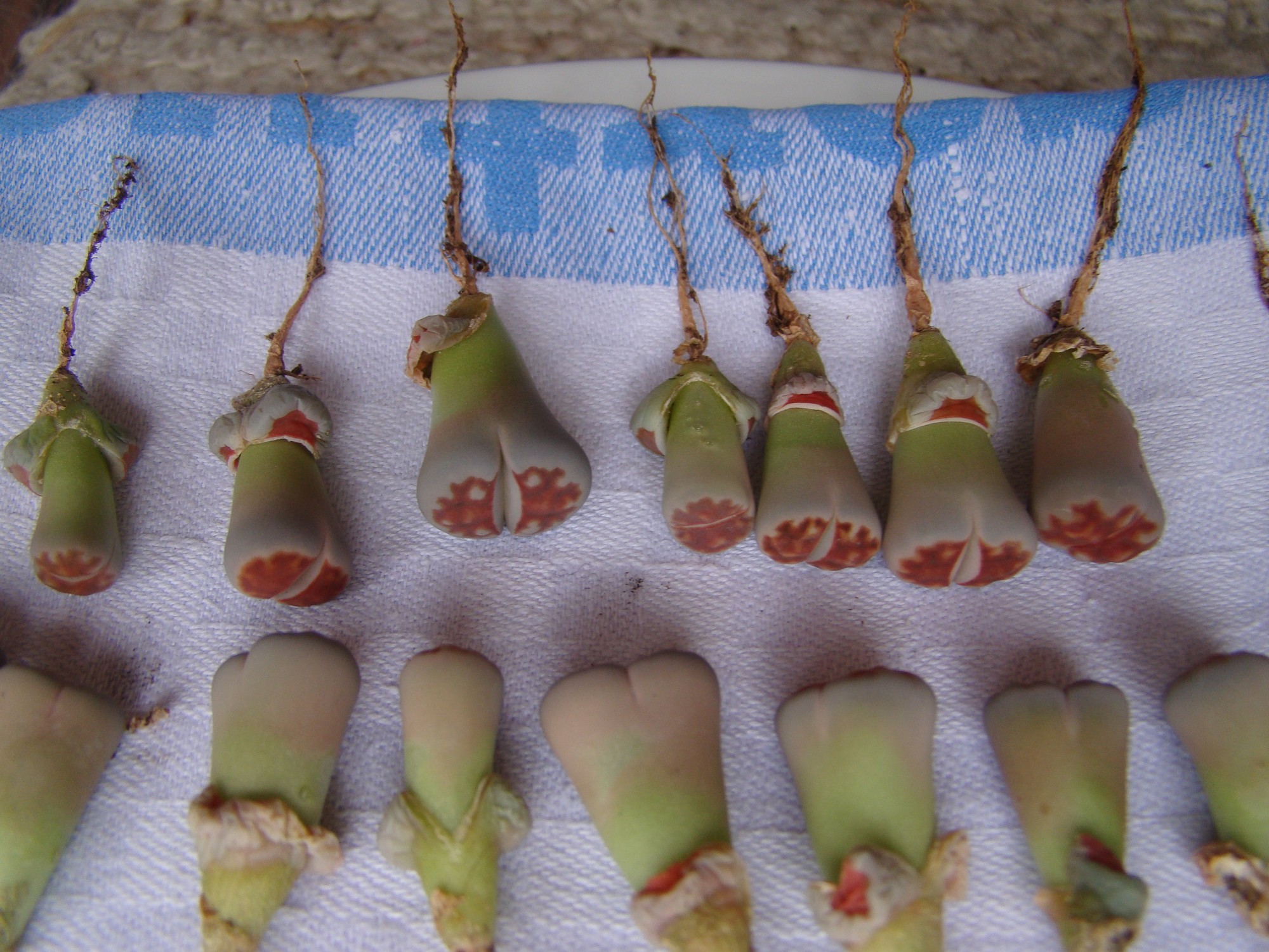 So, ich habe mittlerweile enttorft und neu getopft, in reinen Bims. Die Pfahlwurzeln kamen mir ziemlich kurz vor, ist das normal so?