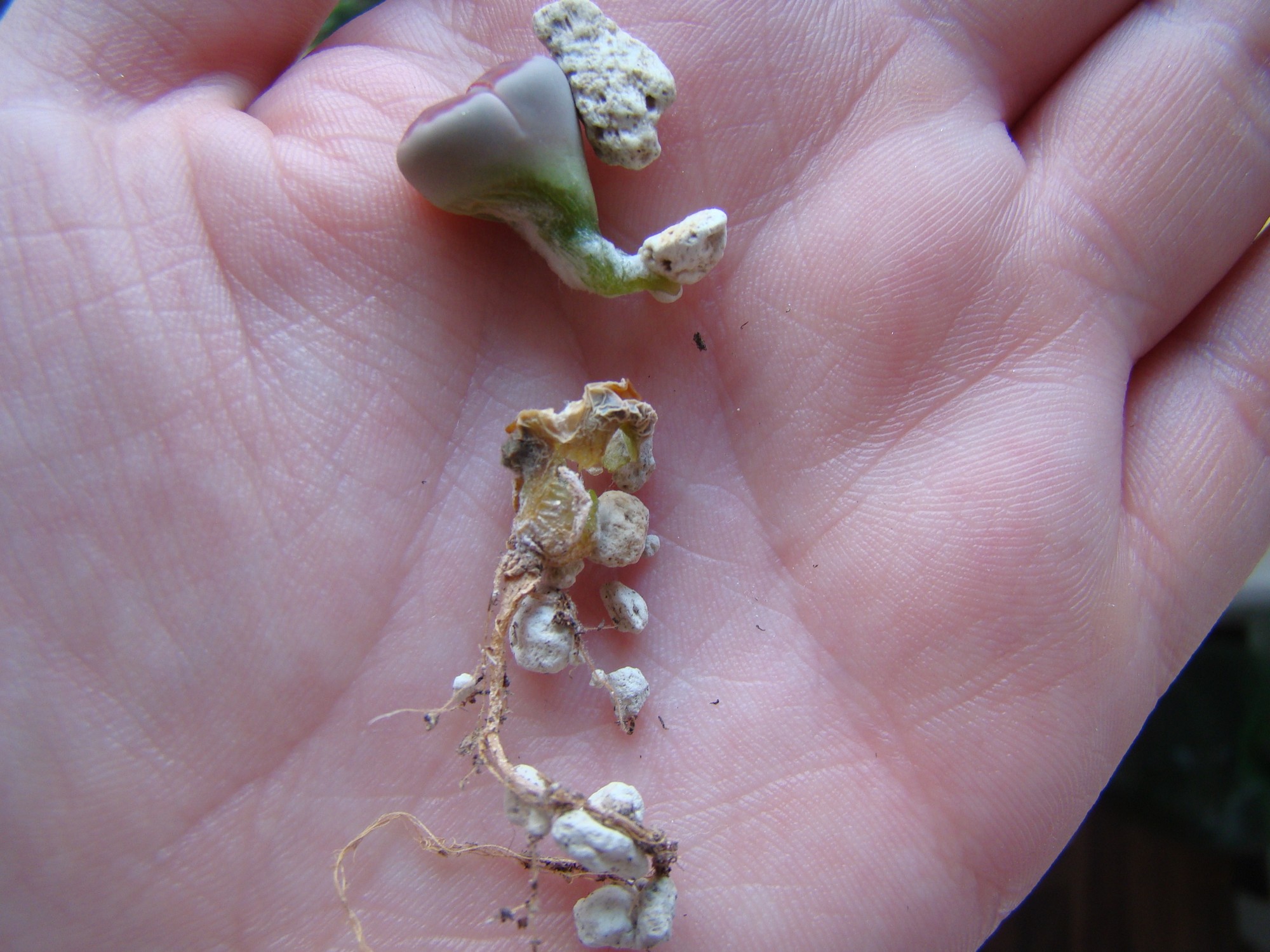 Hallo ihr Lieben, ich hab jetzt nach dem Enttorfen und Umtopfen ein paar Probleme mit meinen Lithops. Sie stehen in reinem Bims, oben habe ich locker noch ein paar Kieselsteine raufgelegt (ich fand das hier so hübsch). Seit etwa zwei Monaten habe ich glaube ich fünf Ausfälle gehabt