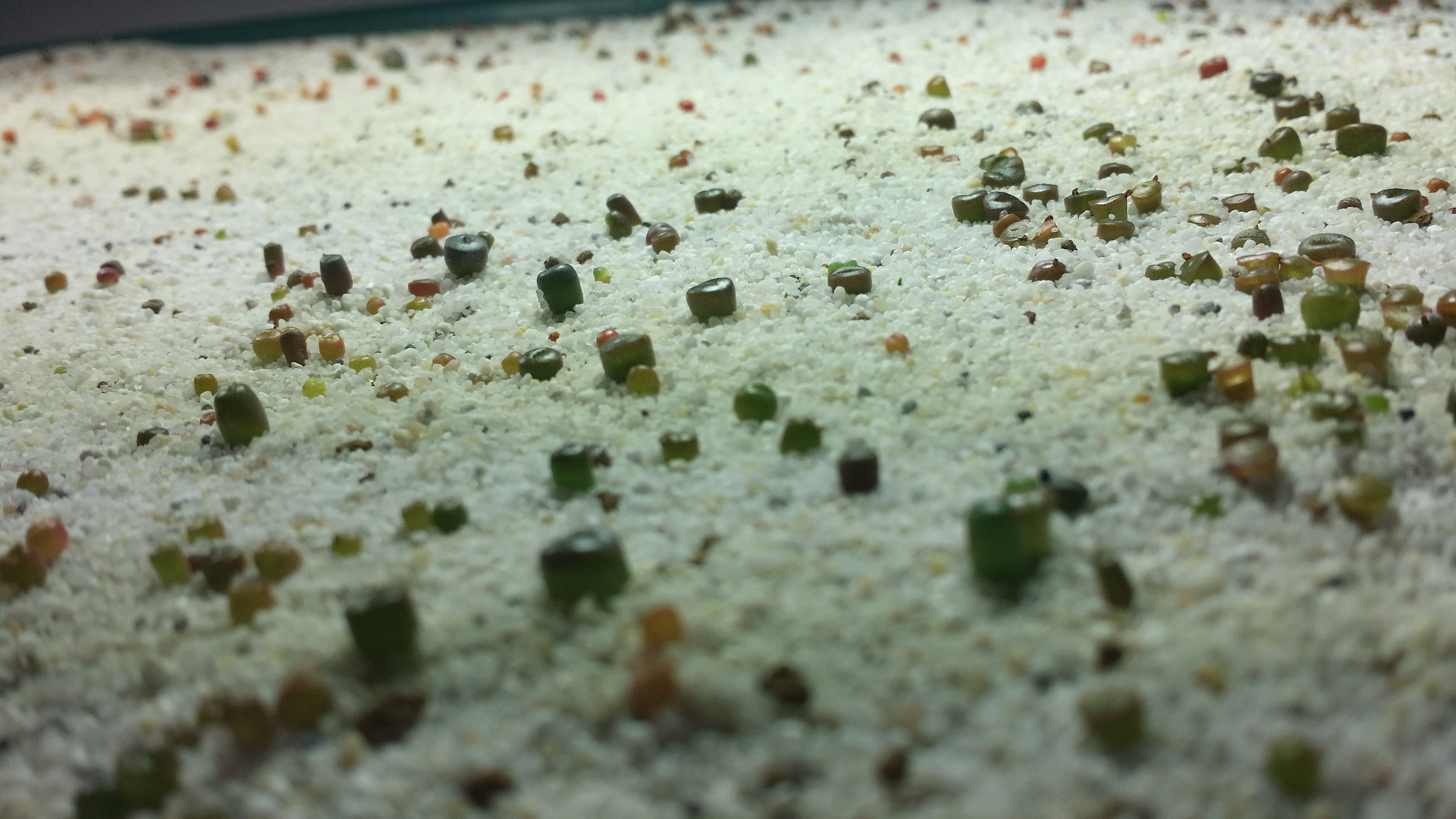 Meine Lithops entwickeln sich ganz gut. Allerdings hatte ich zwischenzeitlich eine Algeninvasion, weil ich sie vermutlich viel zu feucht hielt und auch einmal düngte... Ich habe dann diese fiesen Schleimis in aufwändigster Handarbeit (über 2 Stunden!!! hat das gedauert) aus dem Substrat gepult und neuen Sand ausgebracht. Jetzt kriegen sie nur noch zweimal die Woche Wasser - dann aber ordentlich. Zwischendurch trocknen sie dann gut ab und die Algen wachsen nicht