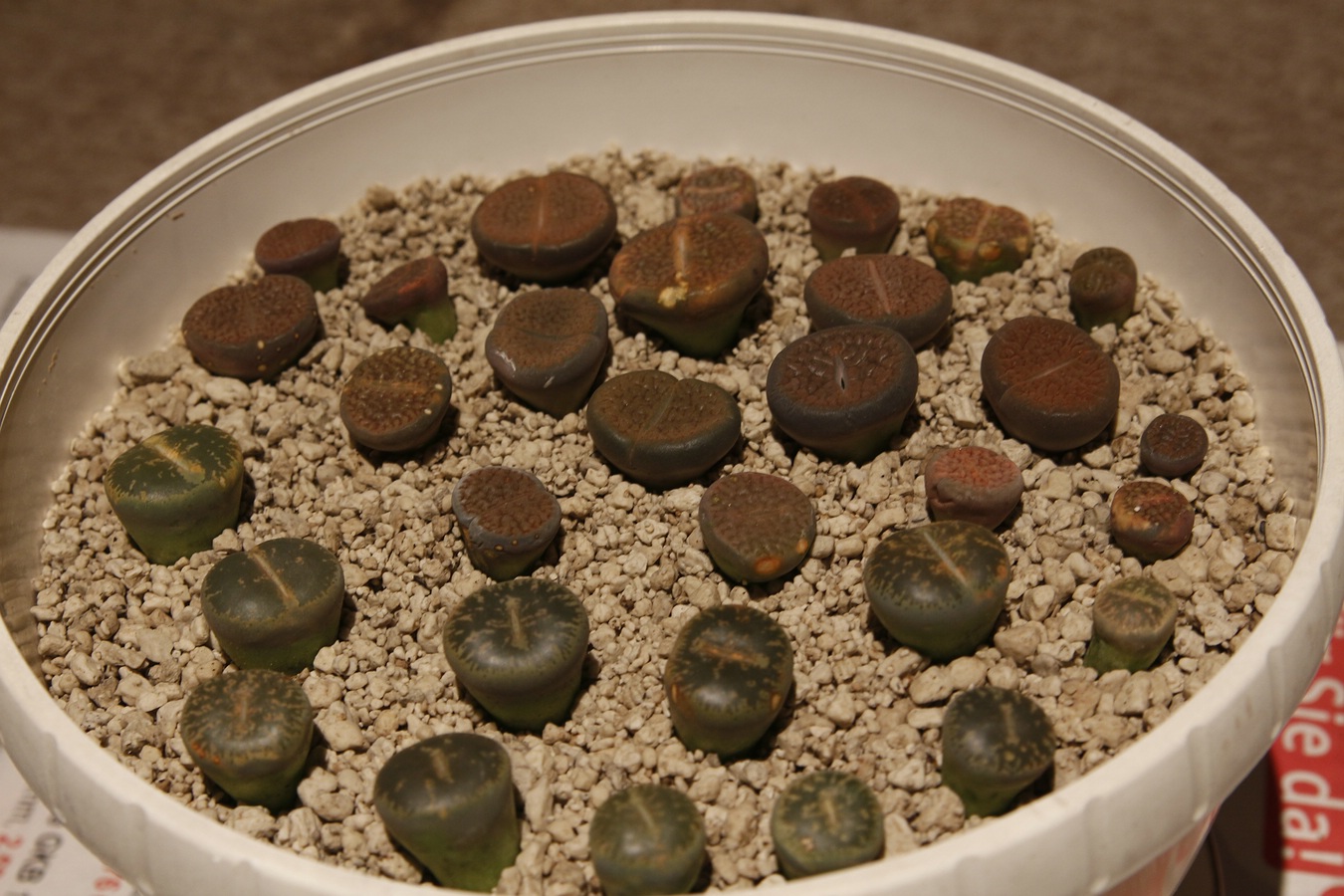 deine Steinchen sind noch zu klein für eine Winterruhe. Die mußt Du bis zum nächsten Winter durchkultivieren. Wenn die Kleenen schrumpeln brauchen sie Wasser, sind sie prall dann nicht sprühen; gibst Du zuviel Wasser faulen die sehr schnell.