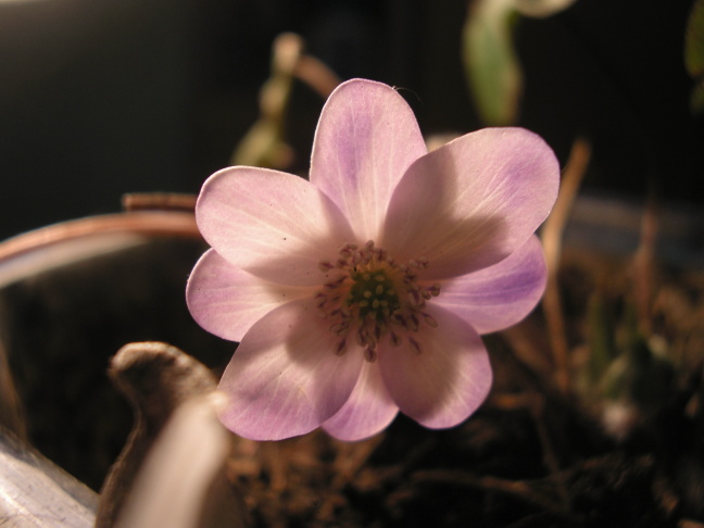 In eine Bonsaischale hab ich ein rosarotes (Hepatica nobilis var. rubra) und ein weißes (Hepatica nobilis var. alba) gesetzt. Da Lebrblümchen in Asien Glücksbringer sind, finde ich Bonsaigefäße gerade zu ideal, was die Optik betrifft.