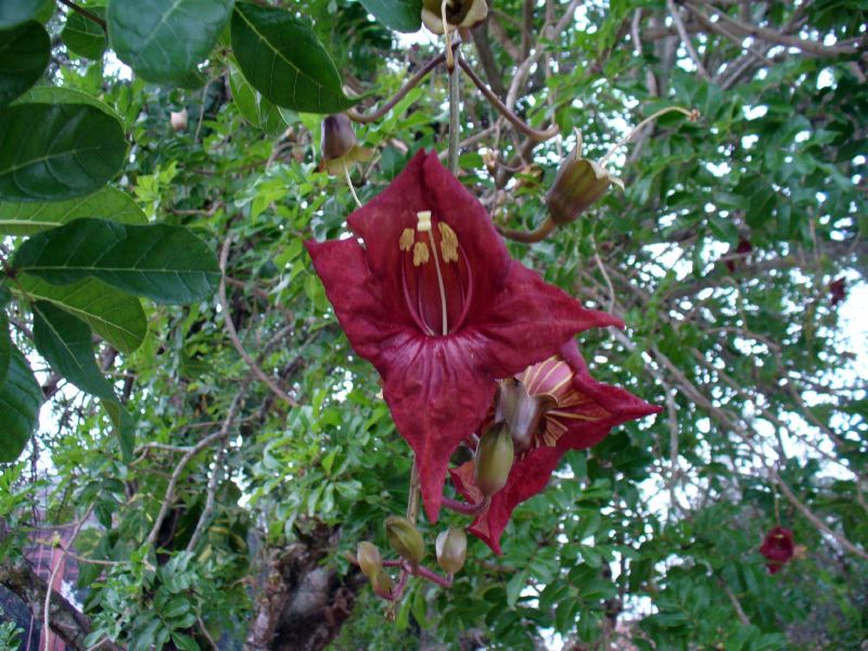 Habe im Urlaub einen Großen Leberwurstbaum fotografiert mit Blüten und Früchten.