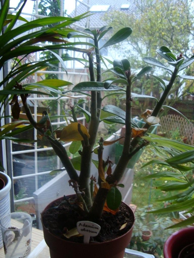 Bei meiner Adenium obesum fallen so nach und nach die Blätter - aber an den Spitzen treibt sie neu aus.
