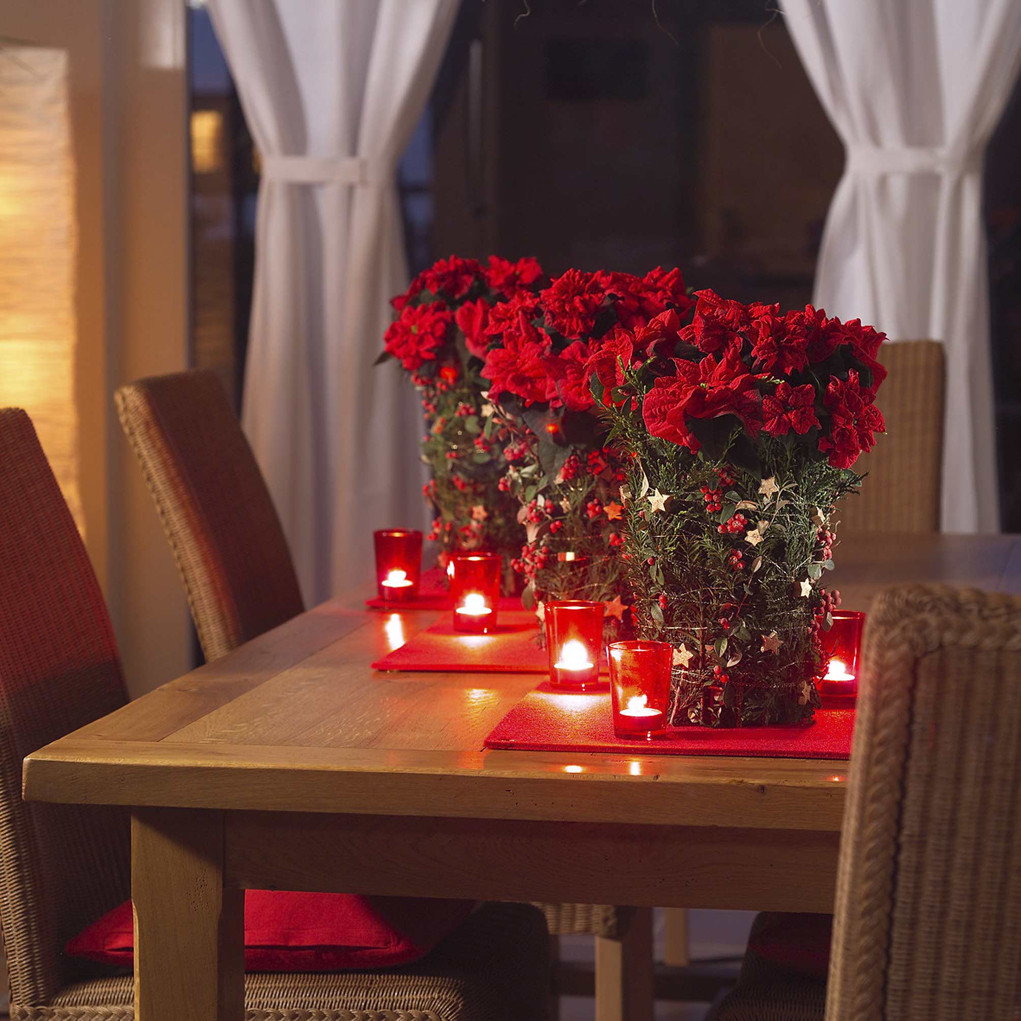 Doch was wäre die Weihnachtszeit ohne die klassischen Adventsfarben ? rot und grün? Weihnachtssterne (Euphorbia pulcherrima) sind seit Jahren die mit Abstand beliebtesten adventlichen Topfpflanzen ? rund 80 Prozent der in diesen Wochen gekauften Topfpflanzen sind Weihnachtssterne. Neben Rot ? die meistgekaufte Blütenfarbe ? stehen sie in strahlendem Weiß und verschiedenen Rot-Rosa-Tönungen im Handel bereit. Auch Pflanzen mit panaschierten (das heißt partiell hell gefärbten) Blättern sind erhältlich. Als Solitär auf der Fensterbank oder an einem anderen prominenten Platz sehen große Exemplare dieser ehemaligen Mexikanerin, die der Franzose Poinsette im 18. Jahrhundert in Mittelamerika entdeckte ? besonders festlich aus. Mini-Weihnachtssterne wirken in der Schale oder als Gesteck auf der festlichen Tafel attraktiv: Mit Muschelzypressen, Ginster und roten Kerzen kombiniert, erzielen sie mit wenigen Blüten eine große Wirkung. Was beim Kauf unbedingt beachtet werden sollte: Die Qualität der Weihnachtssterne kann man an den kleinen Blüten zwischen den Hochblättern erkennen. Fehlen diese kleinen gelben, kugeligen Blüten, sollte man sich ein anderes Exemplar aussuchen.