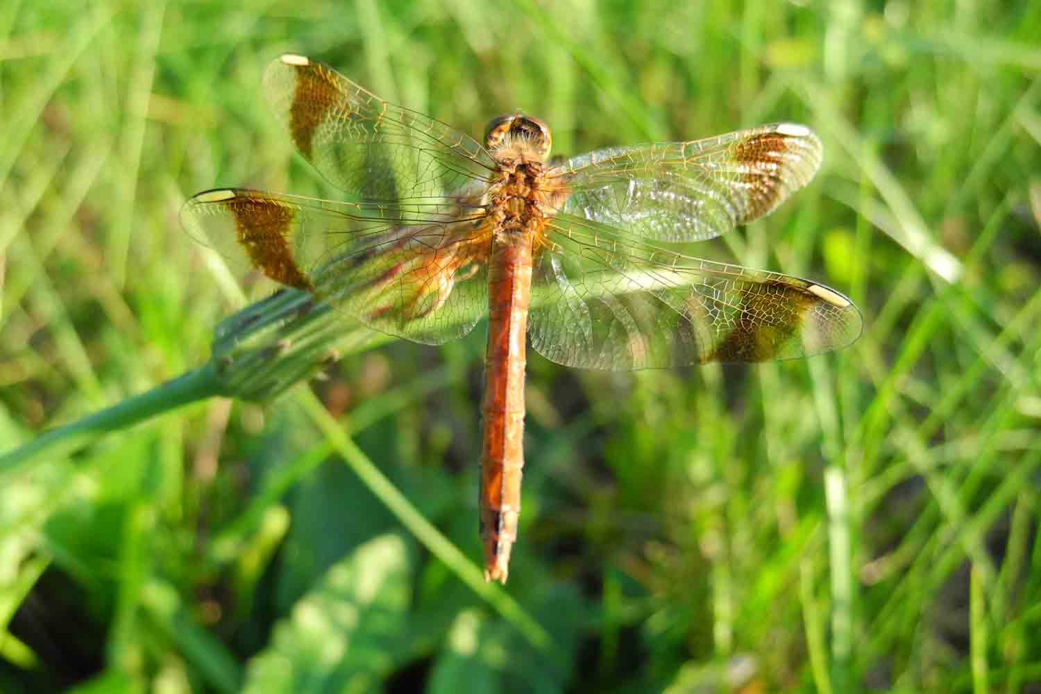 hier mal ein foto einer gerade schlüpfenden/sich entfaltenden libelle. sie trocknet noch ihre flügel, das ist der für sie gefährlichste zeitpunkt, denn da ist sie eine leichte beute. welche genau es ist, weiß ich aber auch nicht......