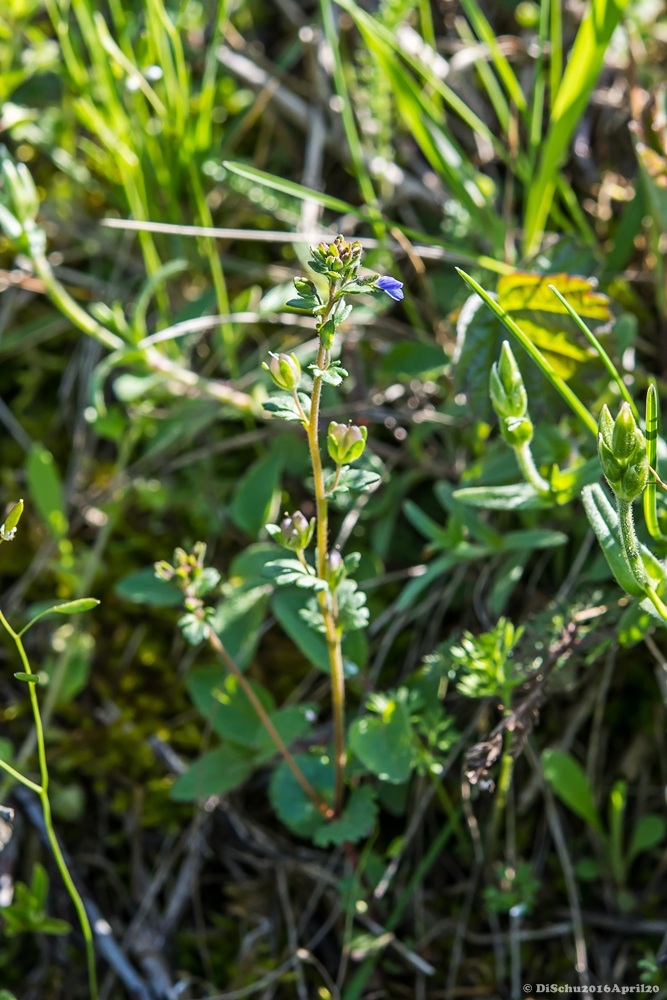 Ich denke, dass man damit die Bestimmung abschließen kann. Mit hoher Wahrscheinlichkeit ist es der Frühe Ehrenpreis (Veronica praecox). Ich finde da alle Merkmale meiner kleinen Pflanze wieder. Auch den blau/violetten Fruchtstempel.
