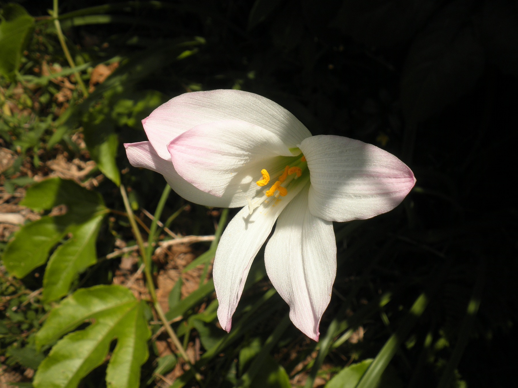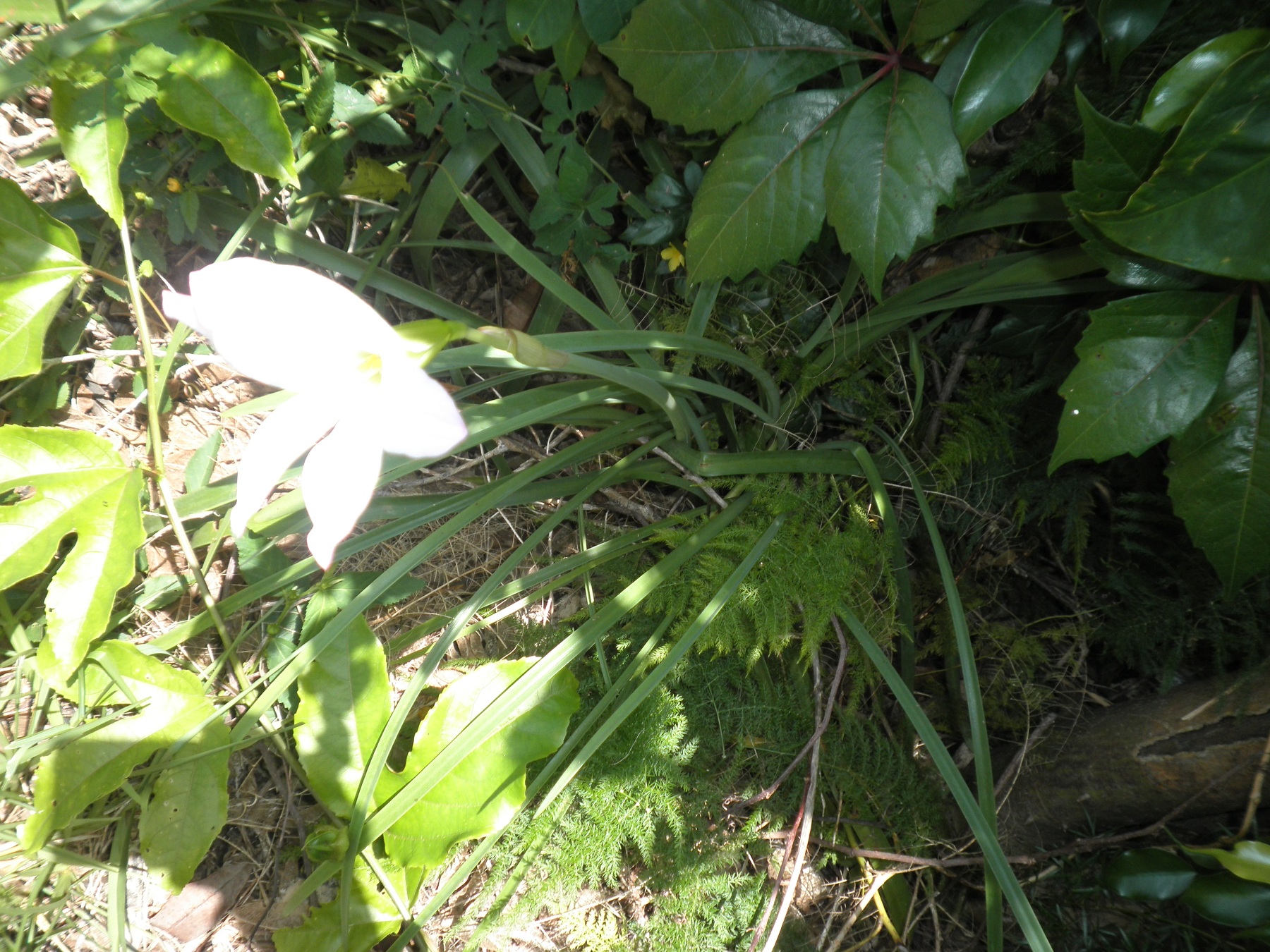 Die Blaetter habe ich schon letztes Jahr bemerkt. Aber seit heute blueht die Pflanze. Ich habe sie dort nicht hingepflanzt und sie waechst an einigen Stellen direkt unter der Ficushecke.
