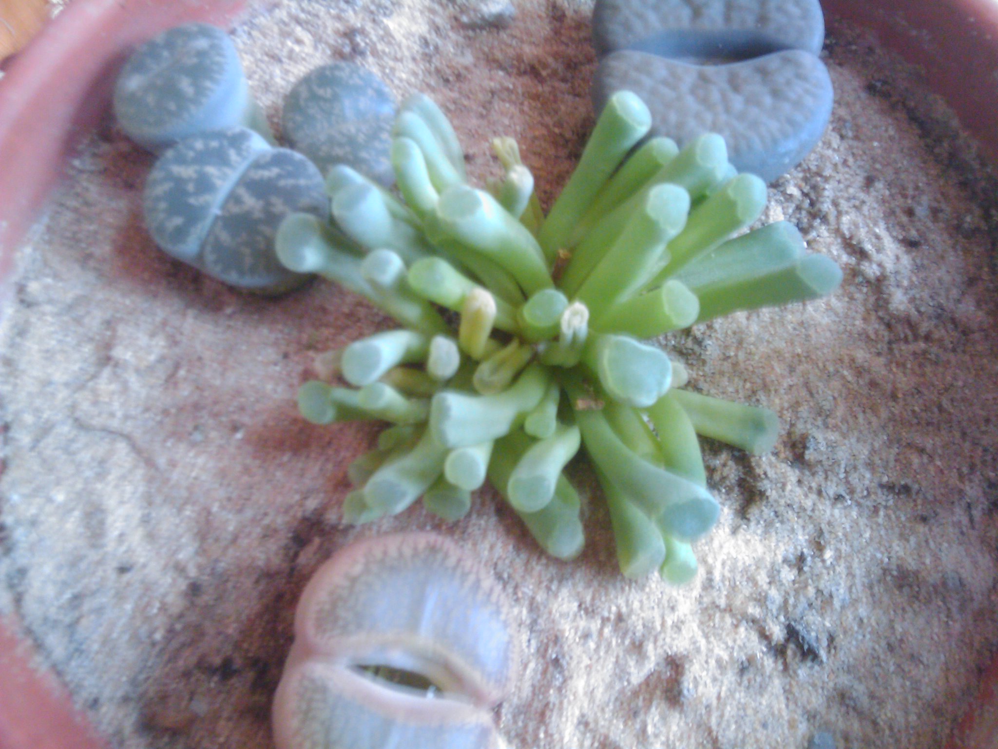ich glaube, du kennst mich gut genug, um zu wissen, dass ich gerne experimentiere (meine wüsties bekommen das am meisten zu spüren ) Die lithops bekamen dünger (gabi kakteendünger), seit sie ein paar monate alt waren. Und ich habe ihnen beim häuten geholfen, was soviel heißt wie aufreißen und die keimblätter bald darauf abschneiden klingt brutal, beschleunigt aber sichtbar das wachtum, wie ich nun festgestellt habe. Z.b. bei den aucampiae habe ich bei einem mit dem aufreißen einen monat länger gewartet, und der hat die anderen beiden noch immer nicht eingeholt. (das alles könnte natürlich auch andere gründe haben...) und, ah ja, ich habe sie sehr früh aus der kaktuserde, in der sie gekeimt sind, in den bims umgetopft