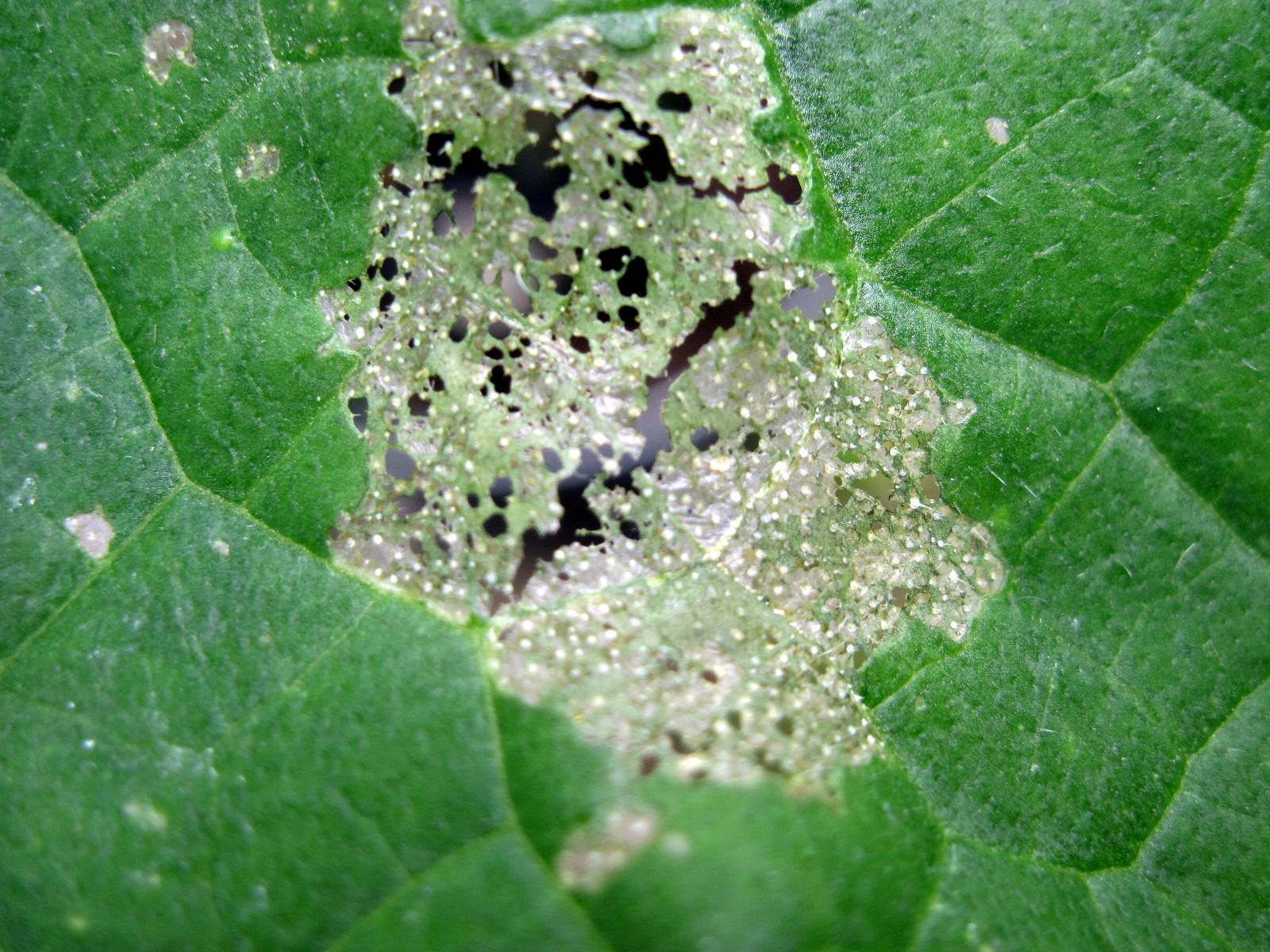 Habe heute bei meinen Treibhausgurken Lochfraß an den Blättern festgestellt und gesehen das unter den Blättern winzig kleine ca. 5mm lange Stecknadeldünne grüne Würmer sitzen und sich an dünnen fäden abseilen. Wo sie gefressen haben ist das Blatt ganz dünn und mit winzigen löchern durchzogen und wie Staub so krümelig.