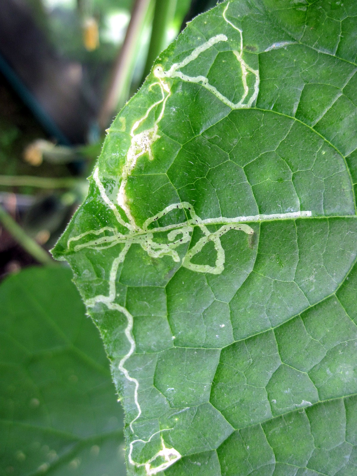 An wiederum anderen Blättern sind wie ein Labyrinth ähnliche Fraßkanäle. Ich stelle mal paar bilder rein.