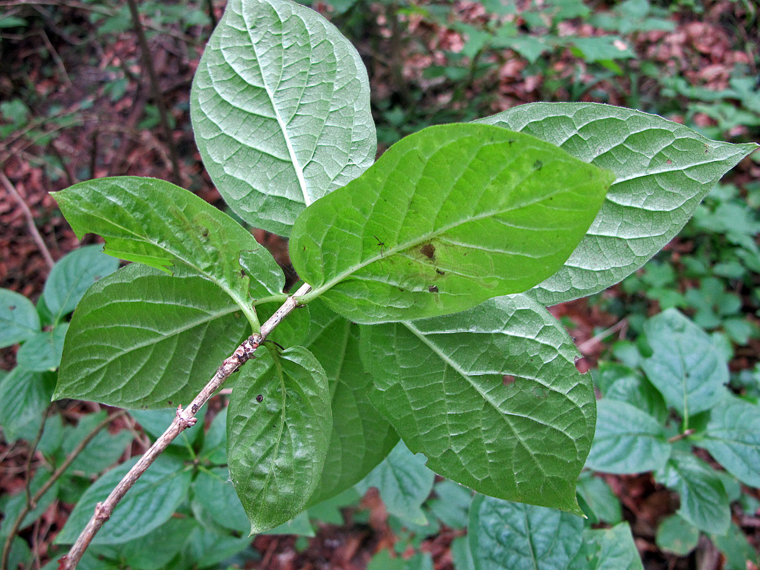 Vor der Beantwortung einer Anfrage nach dem Namen eines Strauches, der in einem Wald auf dem Thurgauer Seerücken aufgenommen worden ist, möchte ich Euch die Fotos zur Begutachtung vorlegen, weil ich mir nicht sicher bin, ob es sich hierbei um eine Lonicera-Art handelt. Die Fruchtstiele scheinen mir dafür etwas zu lang. Außerdem müßten die Früchte daran normalerweise paarweise auftreten.
