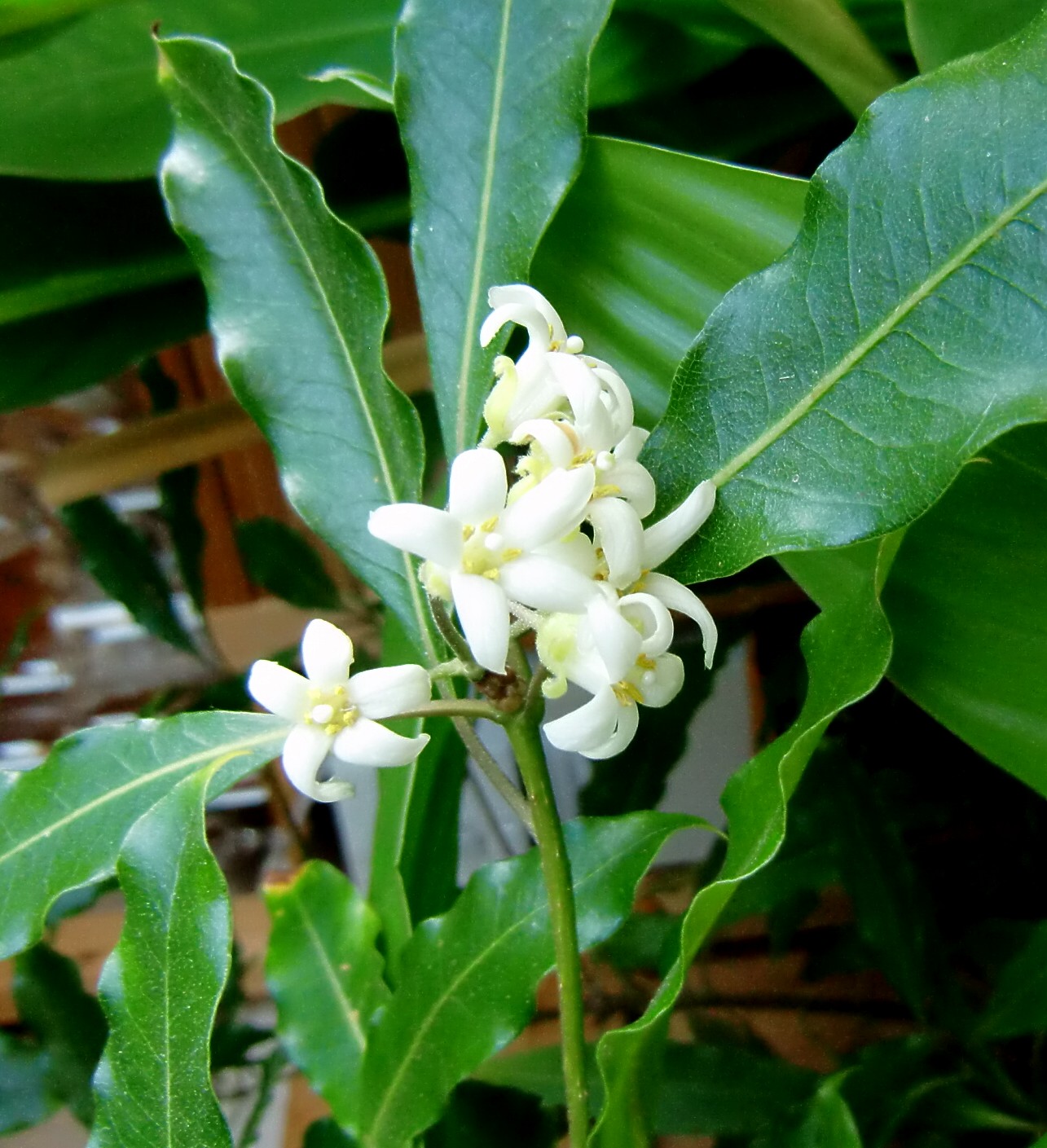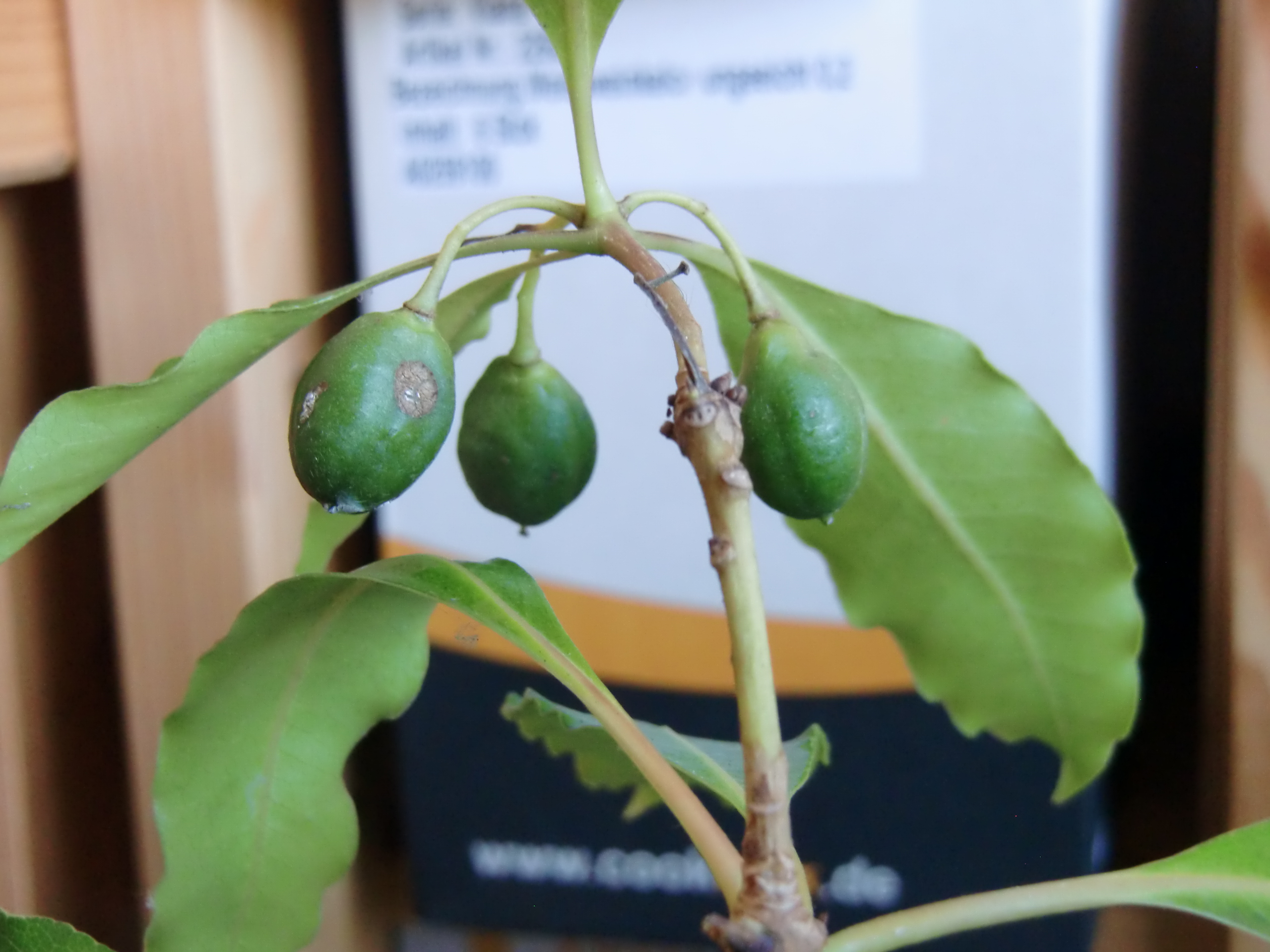 Wie jeder Madeirabesucher sammelten wir jede Menge Samen. Und nun haben wir jede Menge Pflanzen. Und diese hier blühte letztes Jahr und trägt nun auch eine Art Frucht, wobei sie nun zur gleichen Zeit auch wieder blüht. Und wunderbar duftet. Ich denke, es ist eine Art Lorbeer, oder?