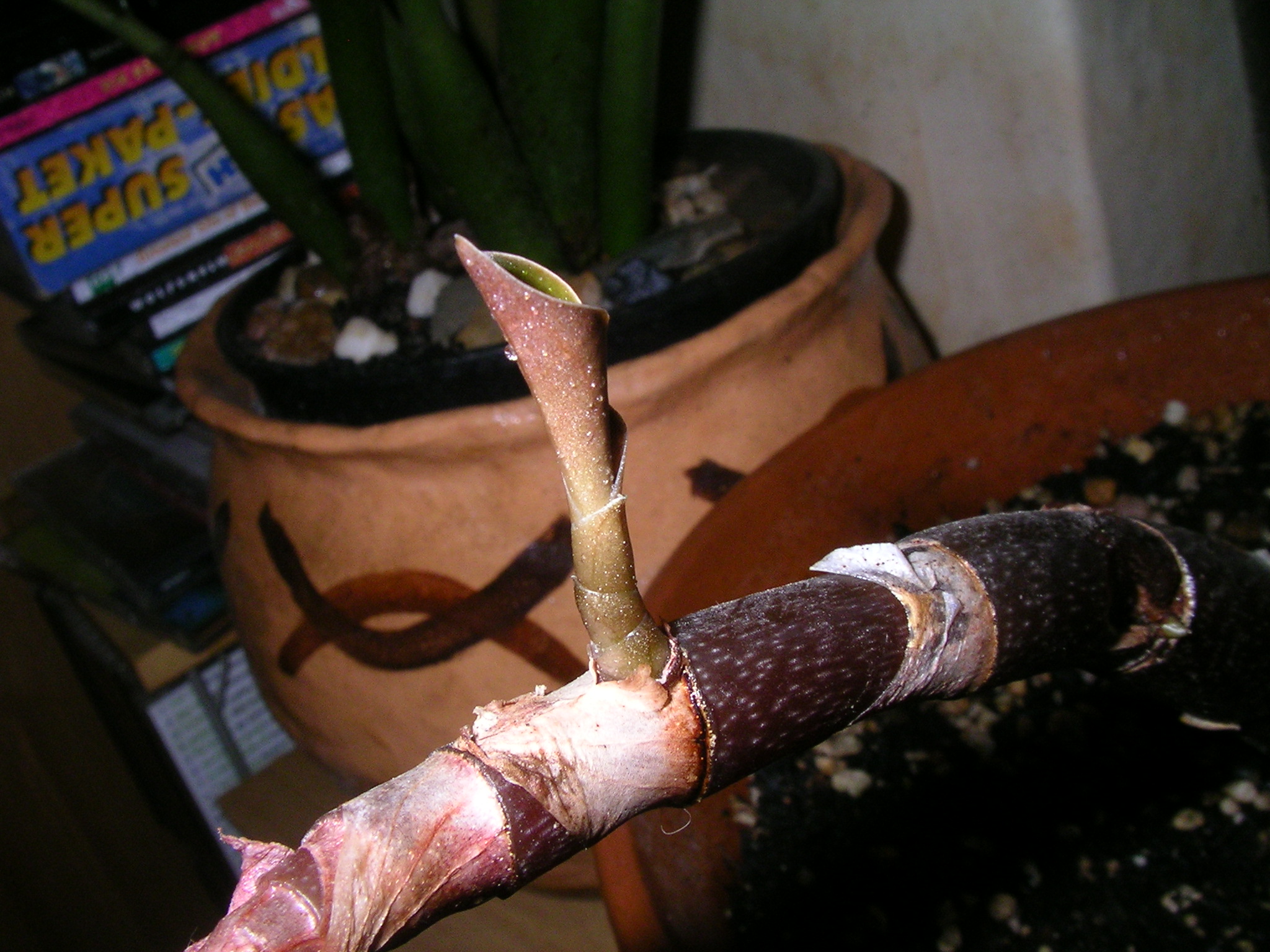 Sie hat 2 neue Austriebe am alten Blütenstengel bekommen und kriegt jetzt aus der Erde raus noch einen Neutrieb.