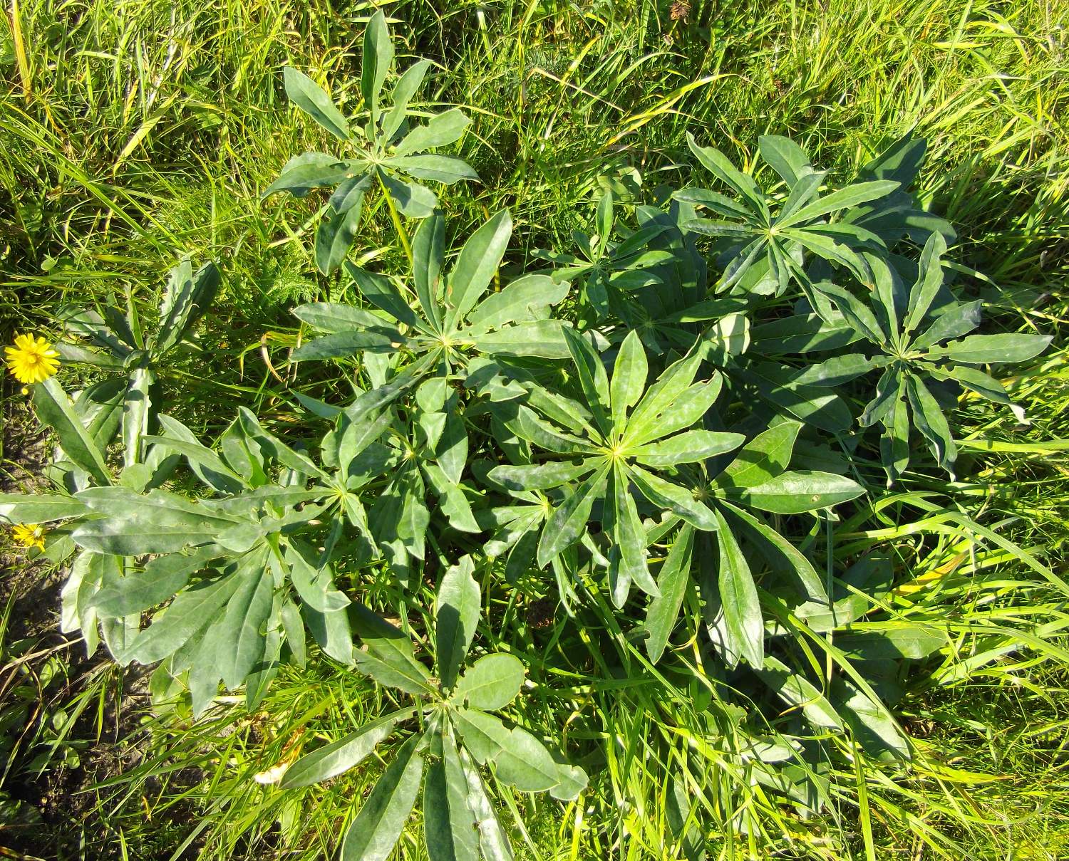 Auf einer Wiese (Naturschutzgebiet) fand ich dieses etwas angeknabberte, wohl auch mehltaugeplagte Pflanze und dachte erst: wohl eine Lupine...