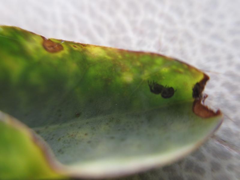 ich konnte uebrigens keine parasiten auf den blaettern erkennen. das einzige was ich gefunden habe, sind ein paar ganz kleine schwarze spinnen (gut zu erkennen mit dem Auge) die einen kleinen weissen punkt auf dem ruecken haben. die ziehen dann ihre faeden von einer pflanze zu anderen, ich denke, das sind aber ganz normale spinnen, die es eben draussen so gibt und sie schaedigen die pflanze nicht oder? ich hatte die pflanzen vor einigen tagen mit einer mischung aus wasser, bio- apfelessig, etwas spuelmittel, algenextrakt und neo chinosol besprueht. schwer zu sagen, ob es was bringt, da ich ja im grunde nicht weiss, was es denn ueberhaupt ist. beim bespruehen haben sich die spinnen von den faeden fallen lassen, aber jetzt sind sie auch wieder da. Es sind aber jetzt nicht uebermaessig viele, glaube auch nicht, dass sie was damit zu tun haben