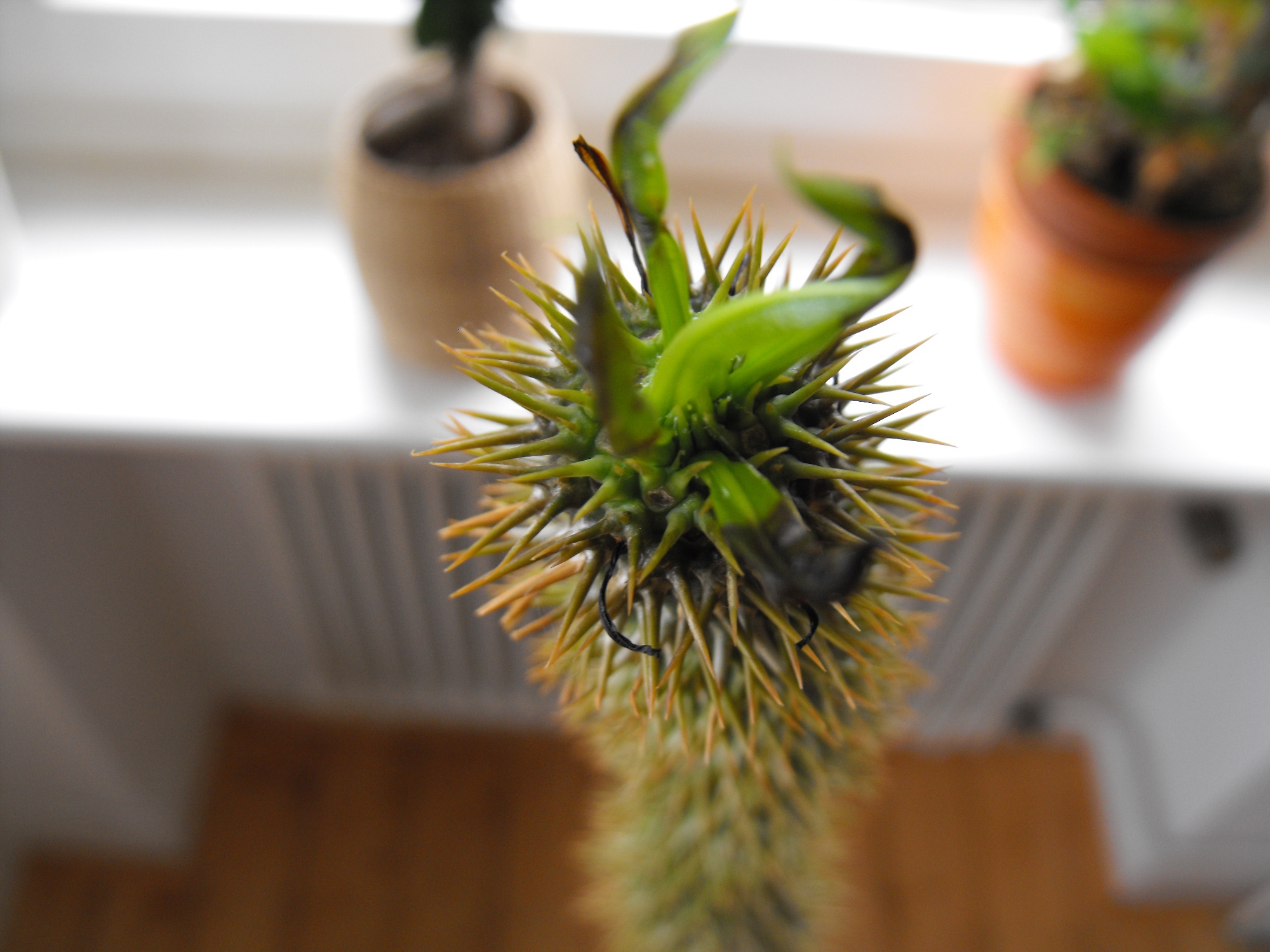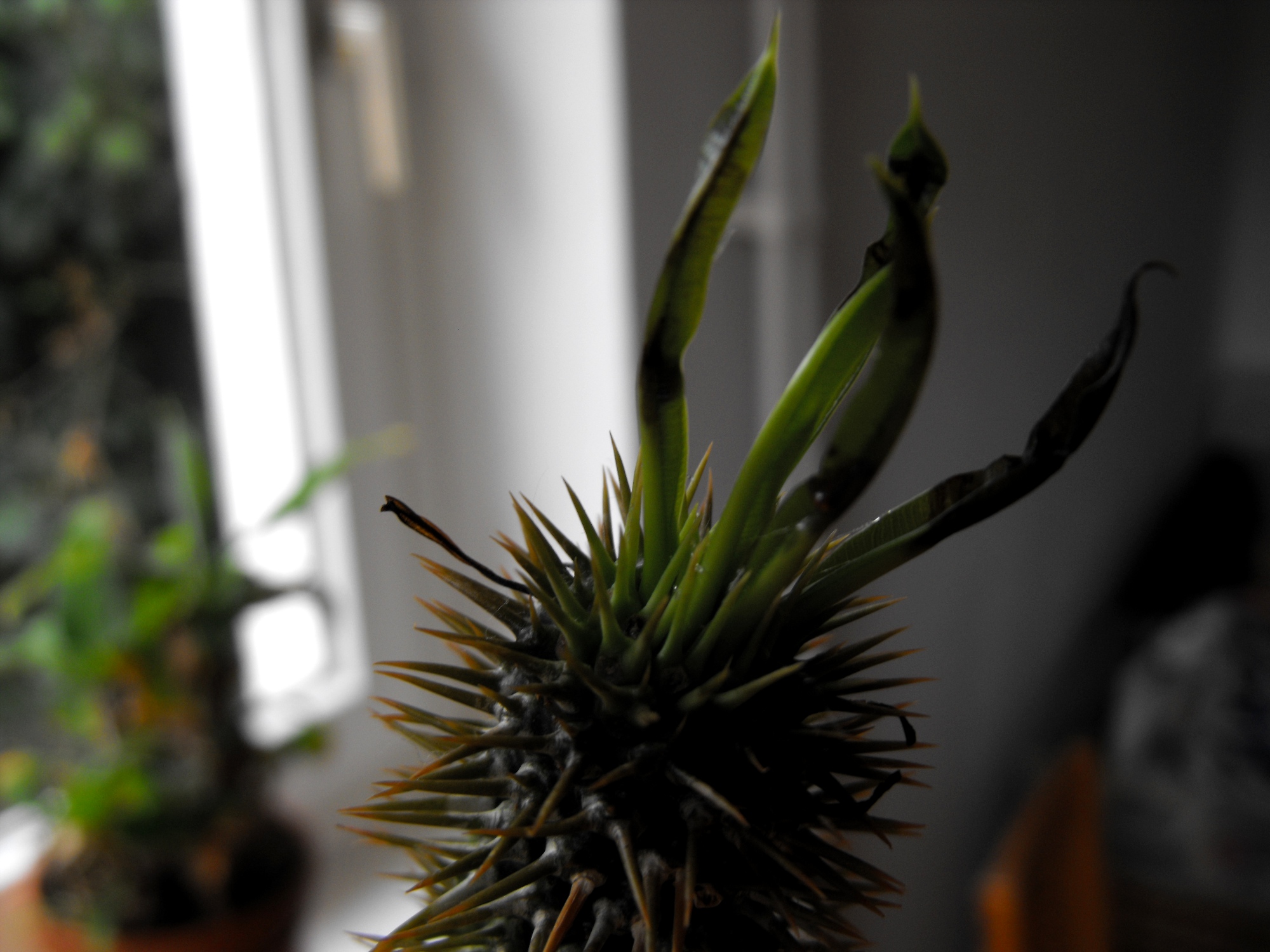 Die Pflanze (ca. 1,50m groß) treibt laufend neue Blätter aus die kurz darauf (bei ca. 2cm Länge) anfangen an einigen Stellen