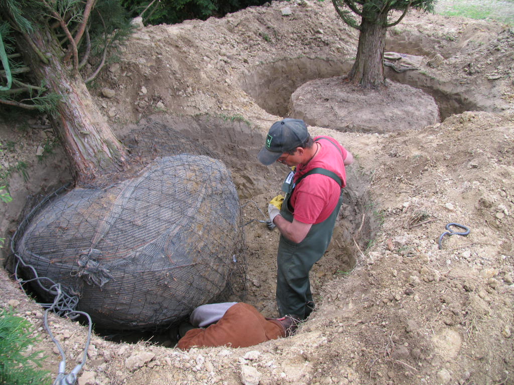 Gleich im Ballenloch ein sogen. Ballenleinen (Jute oder Balidur) fest anlegen! (Gibts sicher in der nächsten Baumschule)