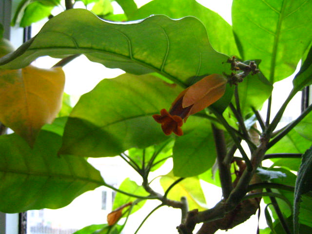 Wie kommt man von den Lila Latua pubiflora Blüten auf eine orang-rot-braune