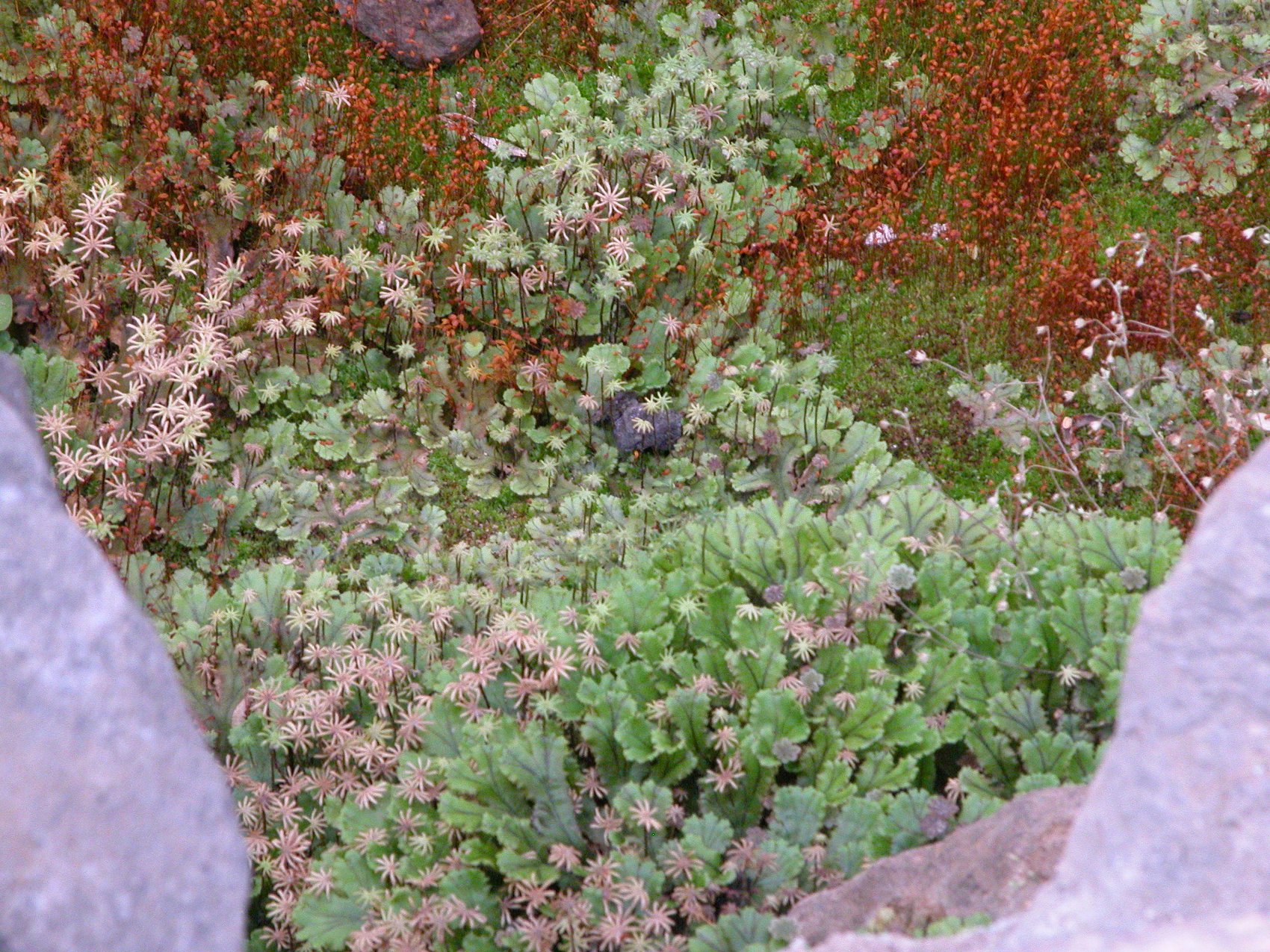 Ich kriegs nicht so ganz scharf - sind das Blüten oder vielleicht ein Lebermoos mit weiblichen Sporangien (quasi die Frau zu meinem Rätsel vom vom 2. Dezember?)