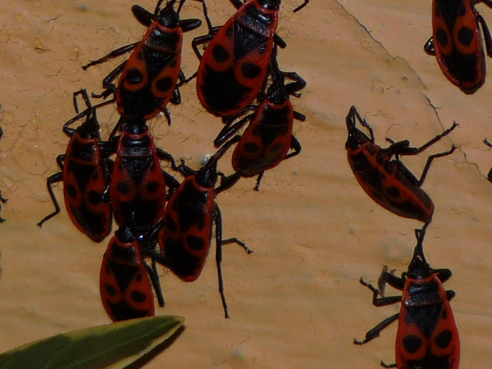 An der Hauswand vom Nachbarn....Feuerwanzen in rauhen Mengen....