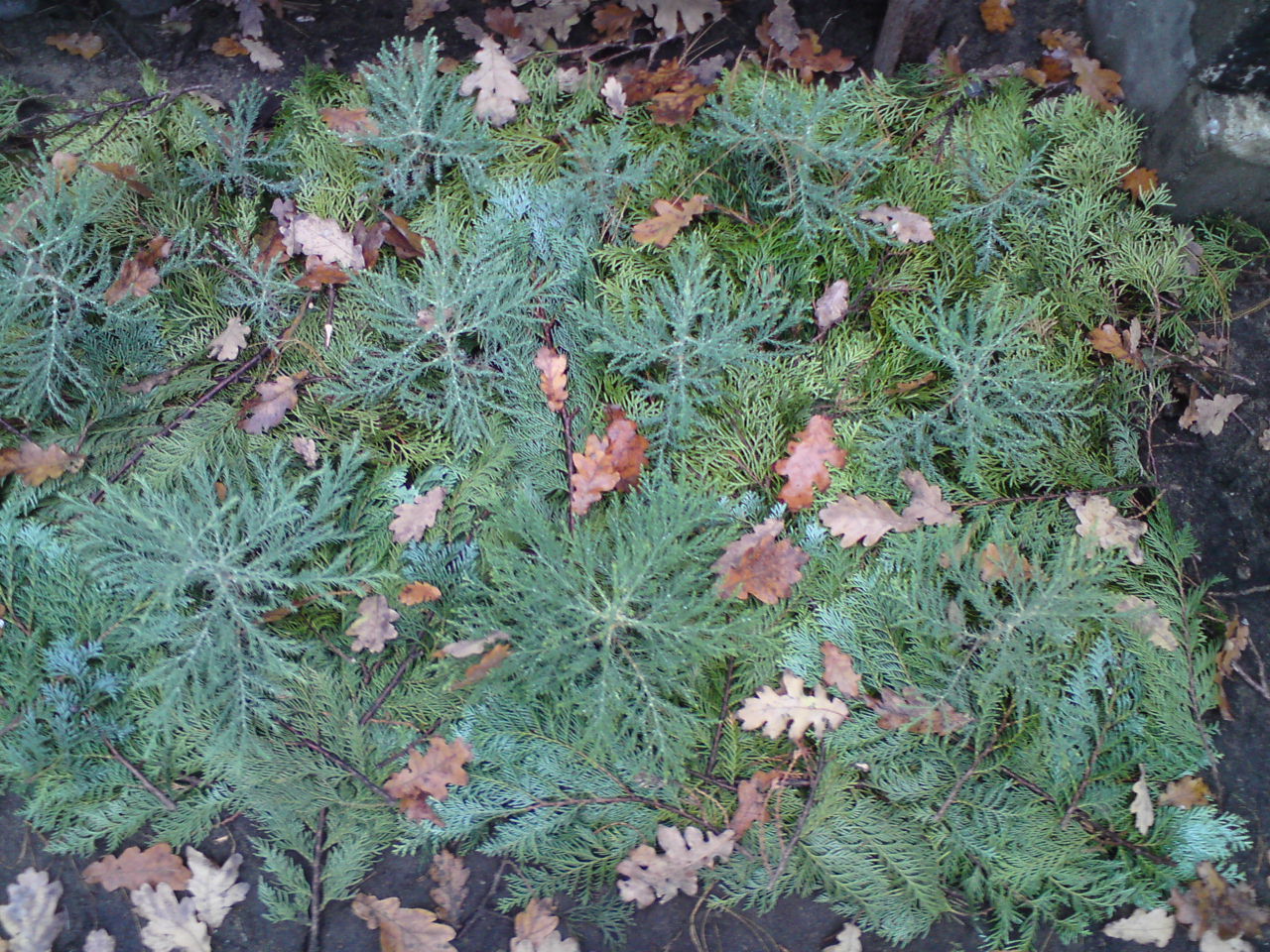 Meine Vorbereitung waren dazu, die BM mit Topf in Boden zu versenken und dann noch Nadelweige (von Scheinzypressen)