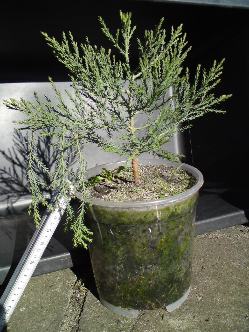 Ich habe noch einen im Garten mit ca. 15 cm aber der wächt nicht so gut da ich an dieser Stelle einen sehr lehmigen, fettigen Boden habe, den muss ich im Frühjahr austauschen gegen anderen Boden.