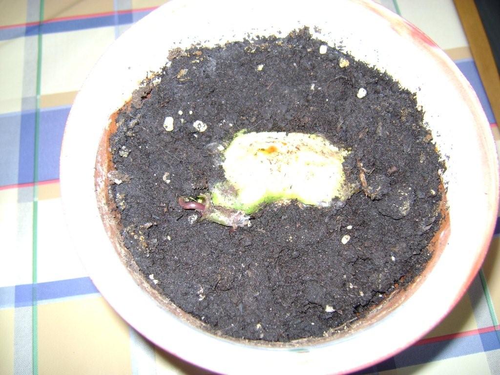 Ich war sehr erstaunt dass schon nach 14 Tagen aus dem nur flach auf Seramis aufgelegten Kern der erste Trieb kam. Aber----und das ist der Grund weshalb ich mich an dieses Forum wende...in beinahe täglichem Rhythmus kam ein neuer Trieb, insgesamt 4 Stück. Ist das normal? Das Bild möchte ich Euch nicht vorenthalten und bitte um Ratschläge bzgl Düngung. Unter der ca 2m dicken Seramisschicht befinden sich ca 25cm normale Blumenerde. Der Topf hat einen Durchmesser von ebenfalls 25cm. Zzt befindet sich eine hohe,übergestülpte Haube aus Plastikfolie über dem Pflänzchen. Gibt es irgenetwas, dass ich Eurer Meinung nach unbedingt berücksichtigen sollte? Für Anregungen wäre ich sehr dankbar und hoffe, dass das Foto gefällt.