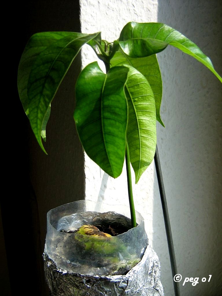 Meine gekeimter Mangosamen steht jetzt in Kokosfasersubstrat mit ner Tüte drüber in der kleinen Kinderstube.
