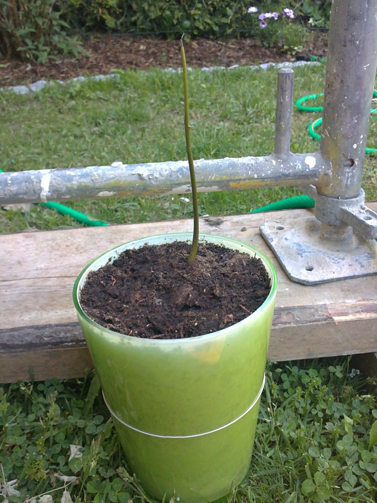 Nun habe ich mich gestern als Mangomörder betätigt. Habe beim Wässern des Garten mit dem Gartenschlauch (Mörder! - man sieht ihn im Hintergrund) den Kopf der Mango gekappt.
